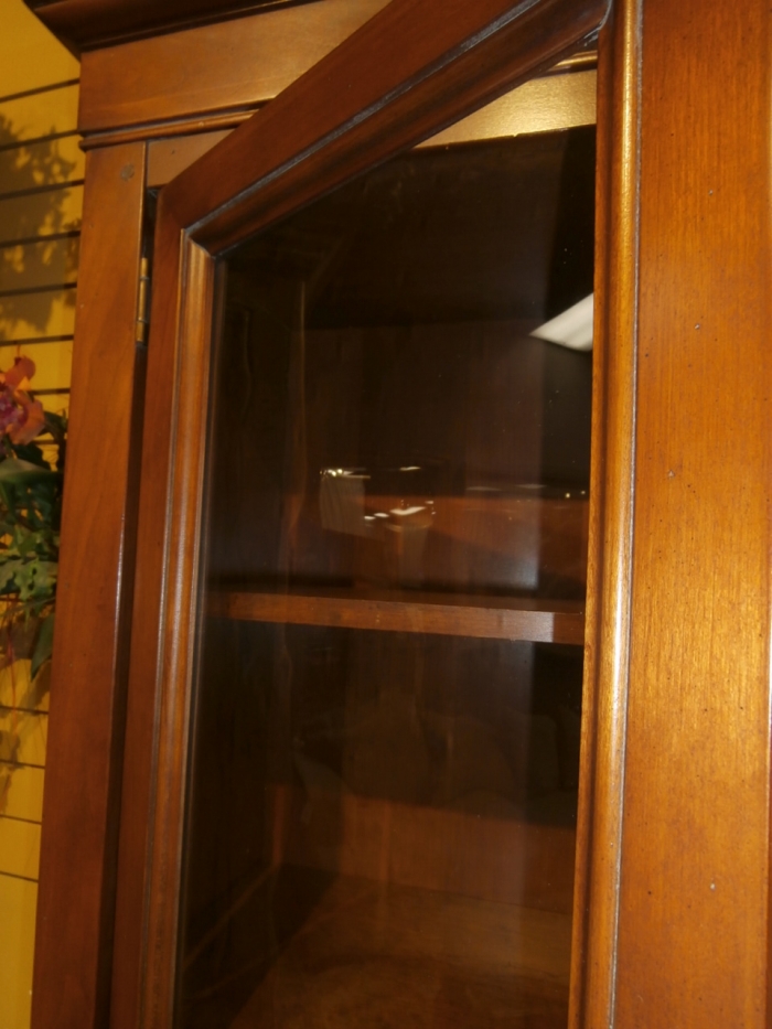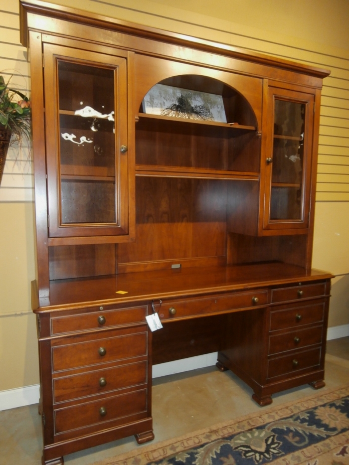 Traditional styled desk and hutch by Sligh with a cherry finish and brass hardware. Measure 72*22*82.