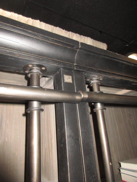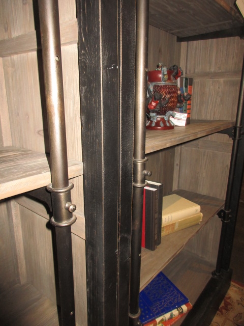 Pottery Barn Gavin bookcase in a reclaimed pine & metal finish. Perfect for a rustic or industrial style space! At posting we have two, shown side by side here. 40"W x 17"D x 91"H.