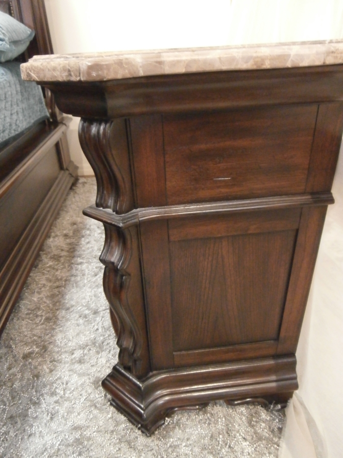 Be enchanted by our Villa Sonoma nightstand. Opulent carvings ornament this piece with fairytale romance. Measures 34*20*32 with matching pieces at time of post.