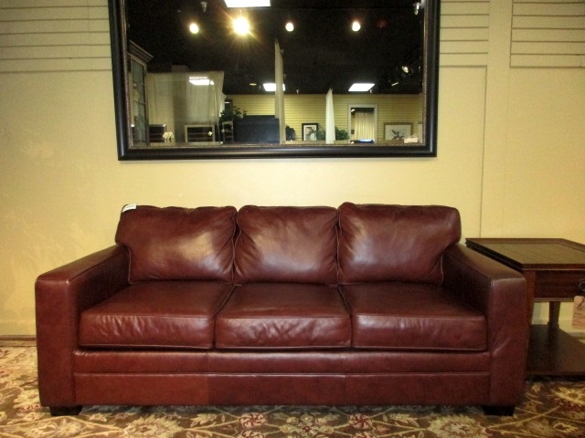 Havertys sleeper sofa in a chocolate brown leather. Clean crisp lines with smooth track arms. This sofa not only offers function but style as well. 86"long x 37"deep x 35"high.