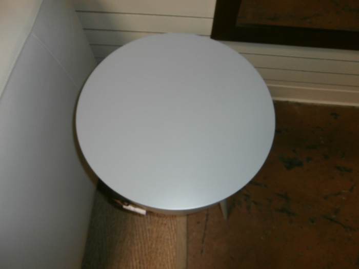 West Elm Mitzi Nightstand is small and streamlined in matte steel. Covered in a powder-coated grey finish. Measures 16D*24"H with two at time of posting.