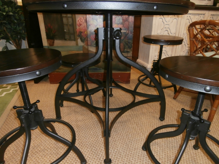 Ashley Pandora 5-Piece adjustable Dark Brown Dining Room Set. Measures 36"D,34"H in brown and black.