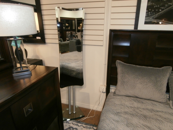 Contemporary Floor Mirror measuring 16"W,69"H in silver. Perfect for the bedroom.