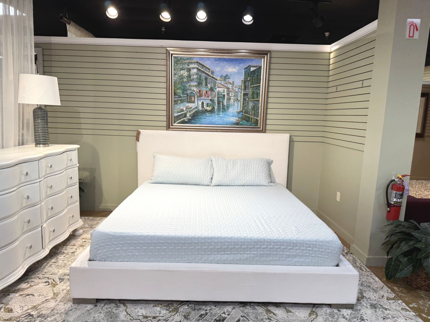 Restoration Hardware Modena contemporary style upholstered king bed in white. Make this gorgeous bed the centerpiece of your master suite.