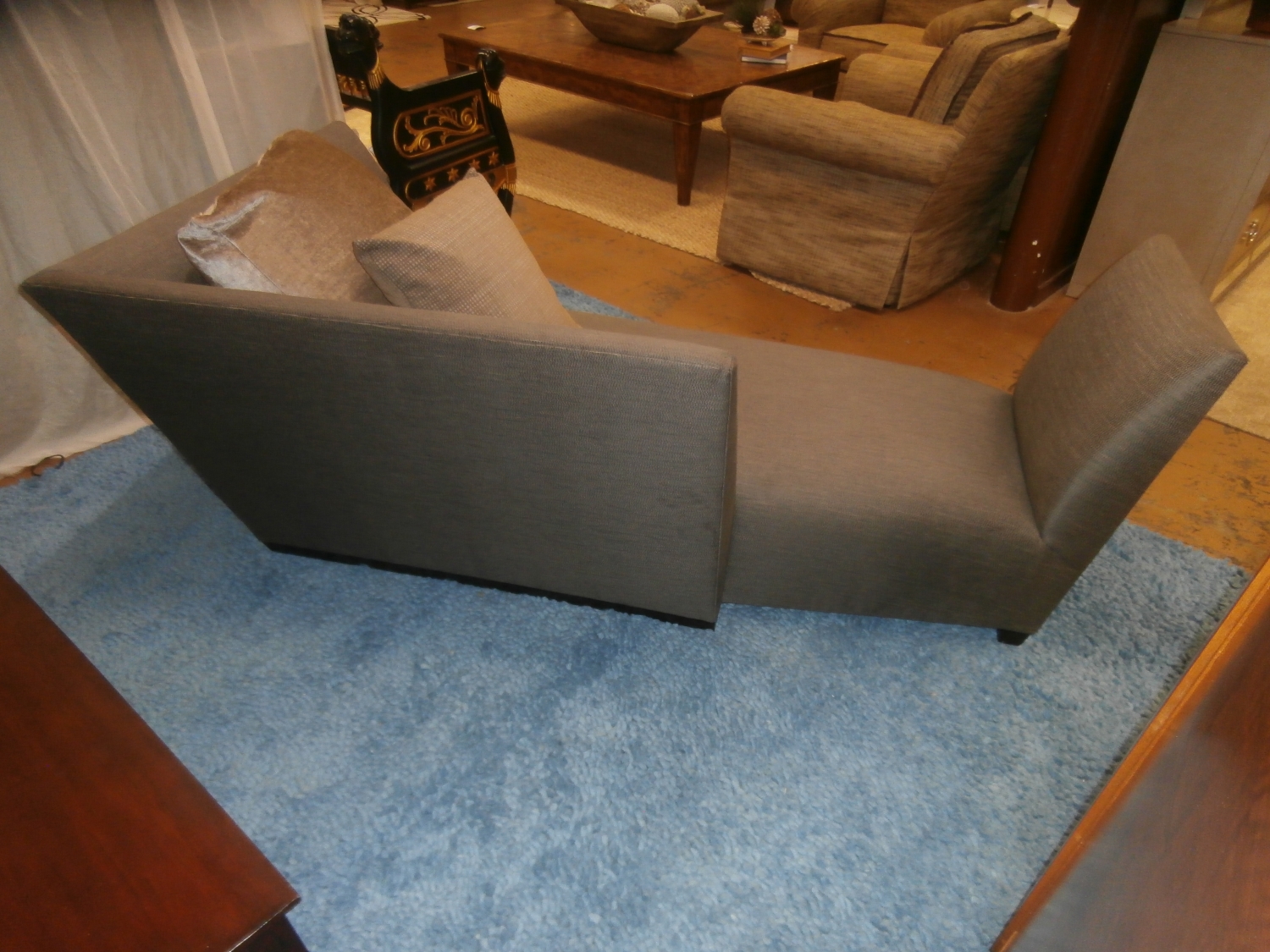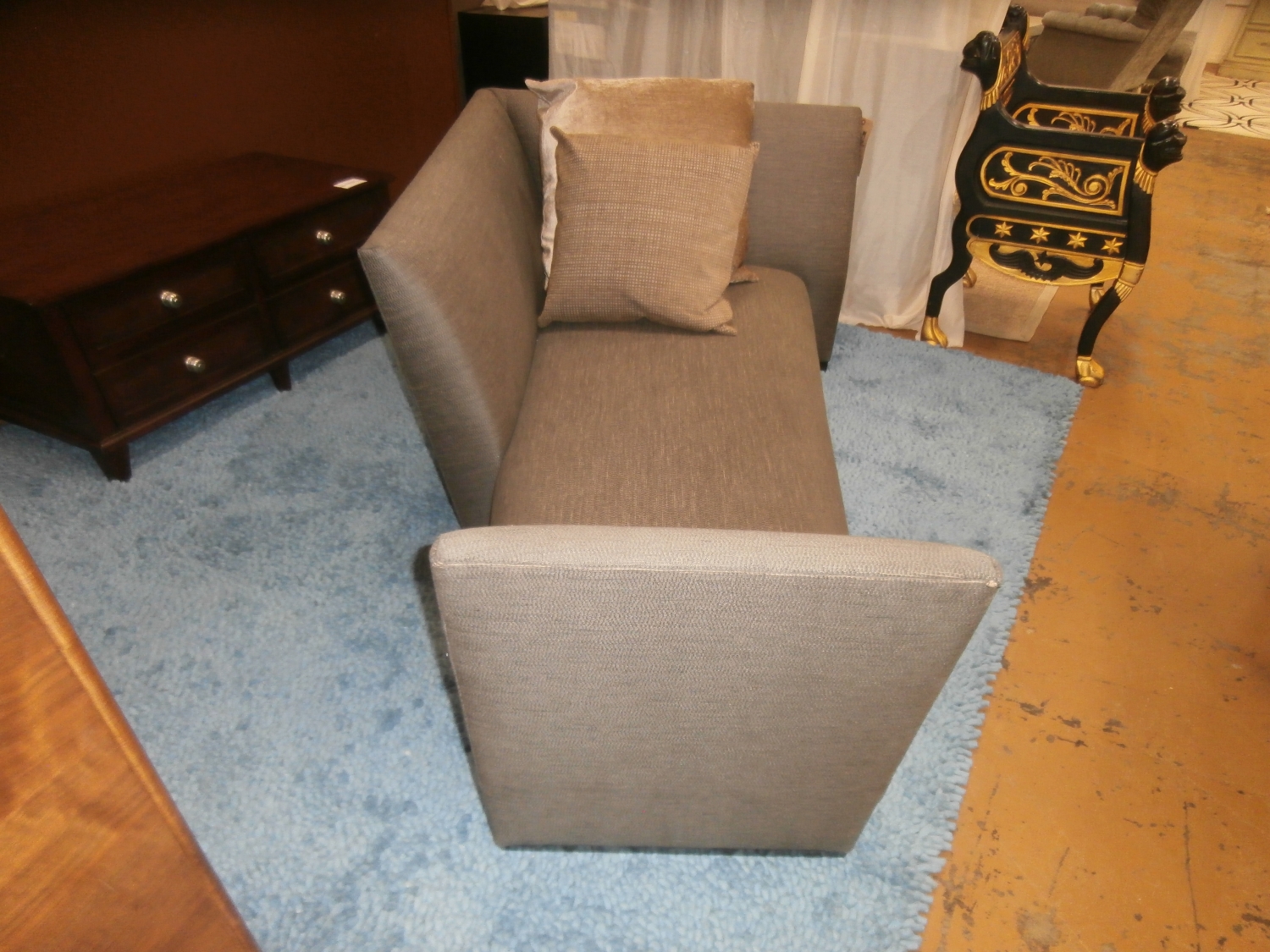 Both contemporary and classic, this signature Donghia Island settee is unfussy, posh, and a revelation of scale and structure. Measures 83"W,44"D,31"H in grey.