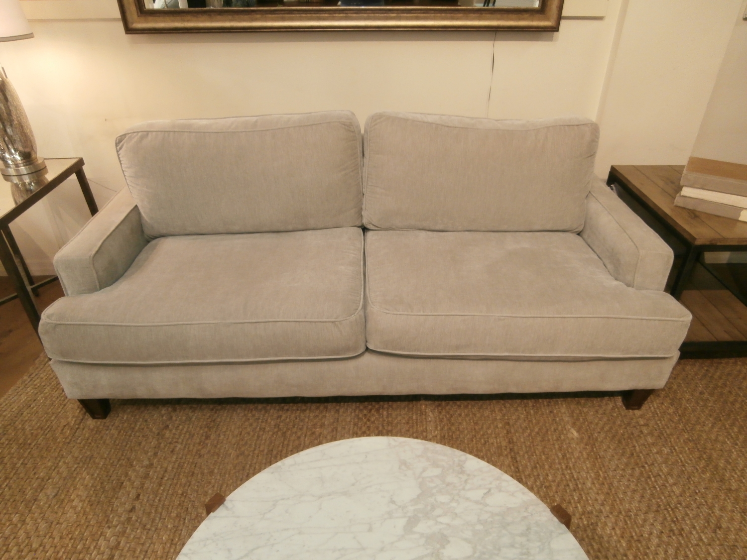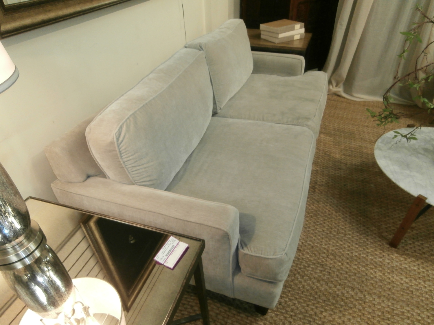 Craftmaster two cushion velvety sofa measuring 78"W,39"D,36"H in grey.