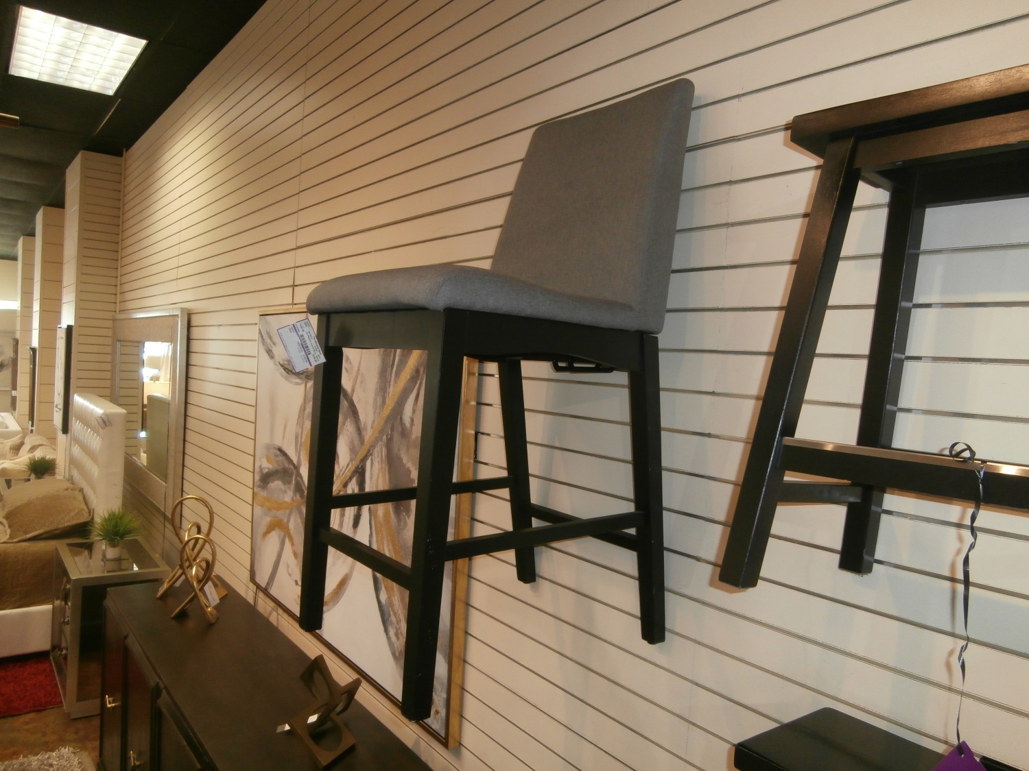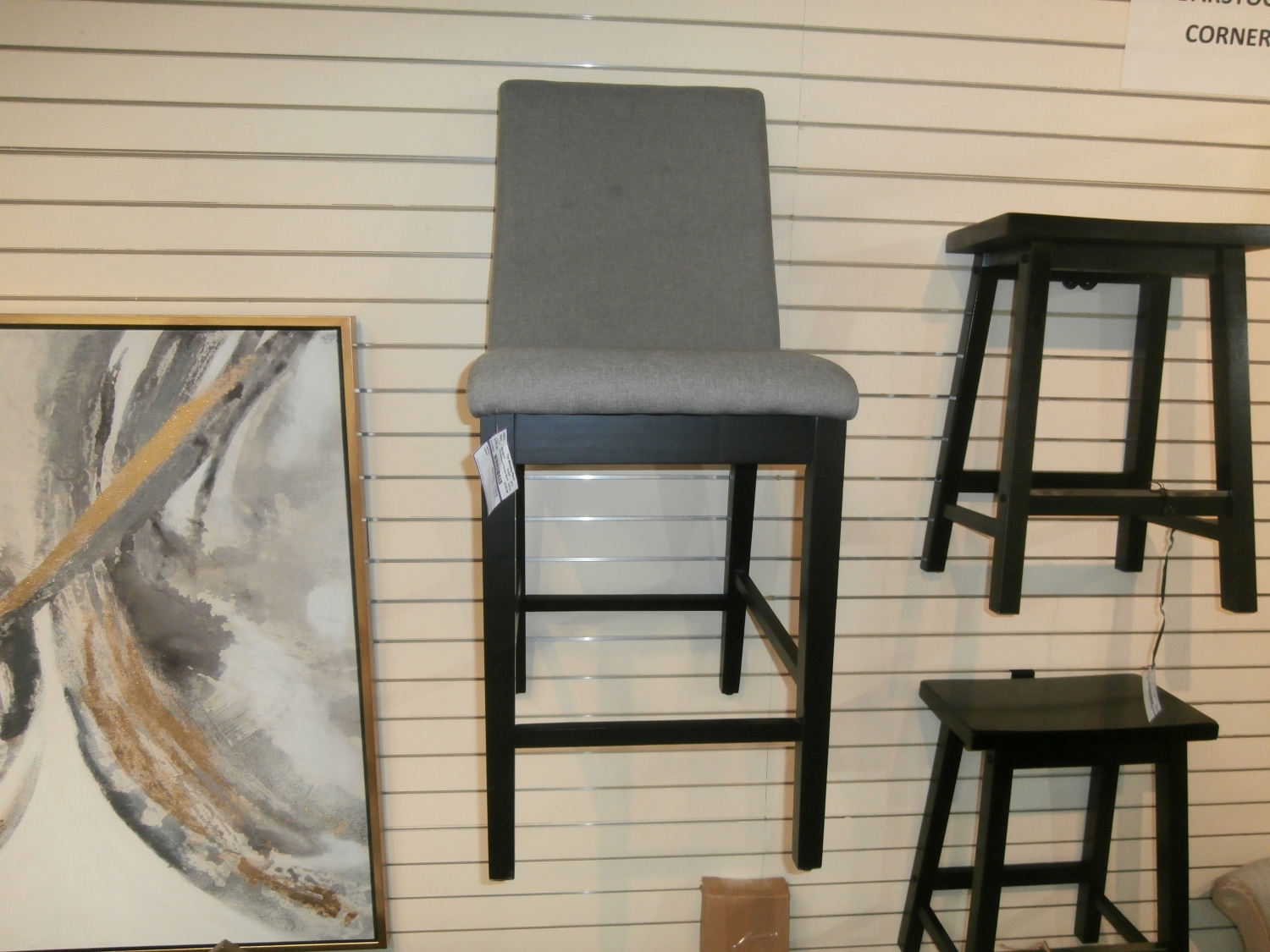 Set of four Madison parson barstools measuring 26"H in grey and black.