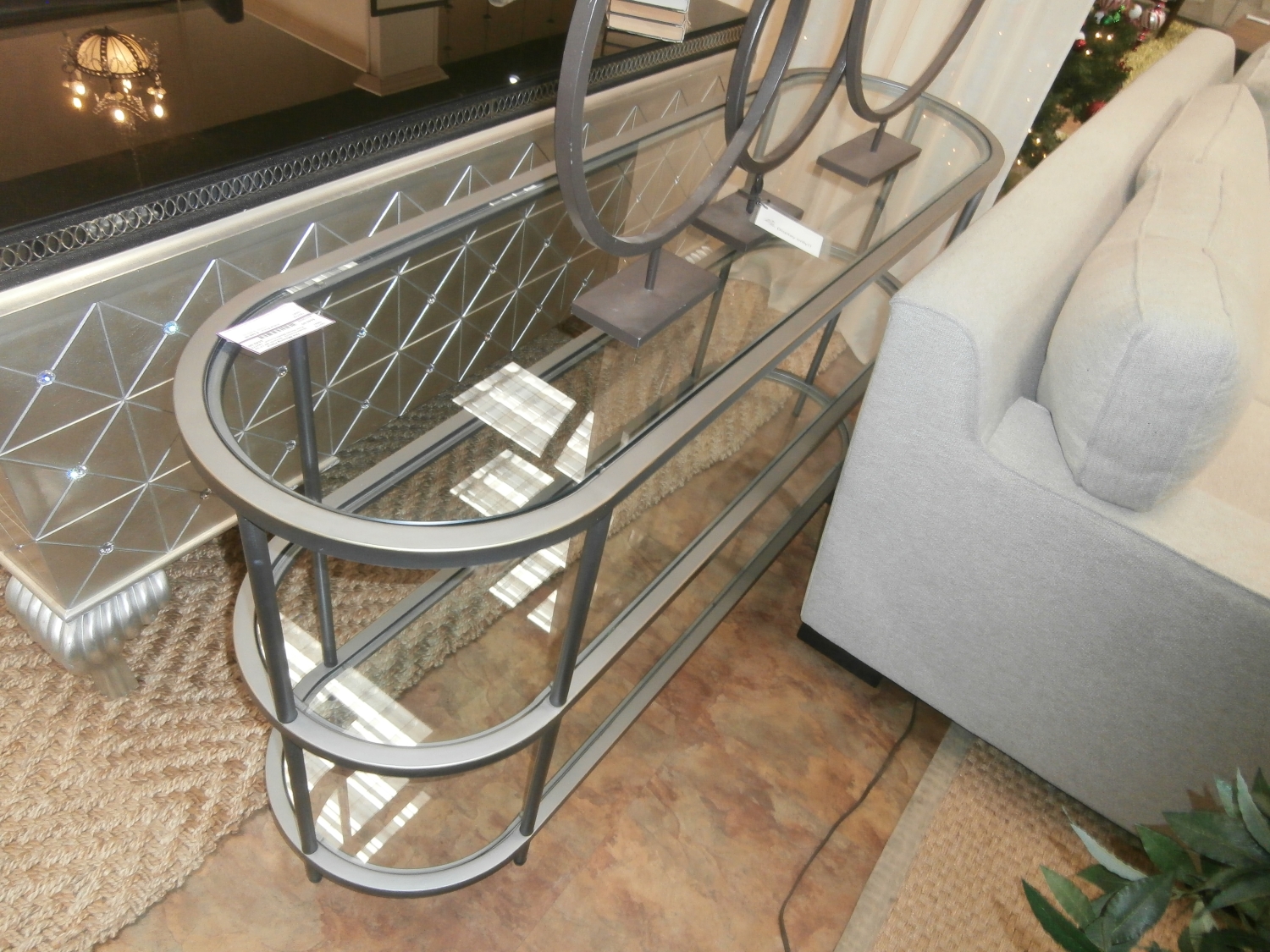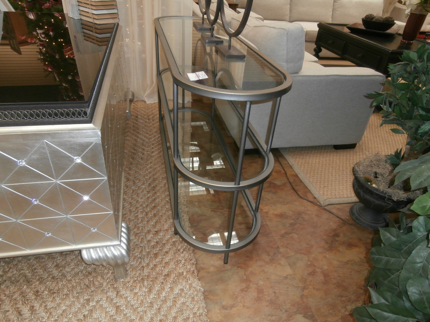 This Four Hands modern consoles contemporary design accommodates TVs up to 60-in for your entertaining space. Measures 60"W,17"D,32"H in silver.