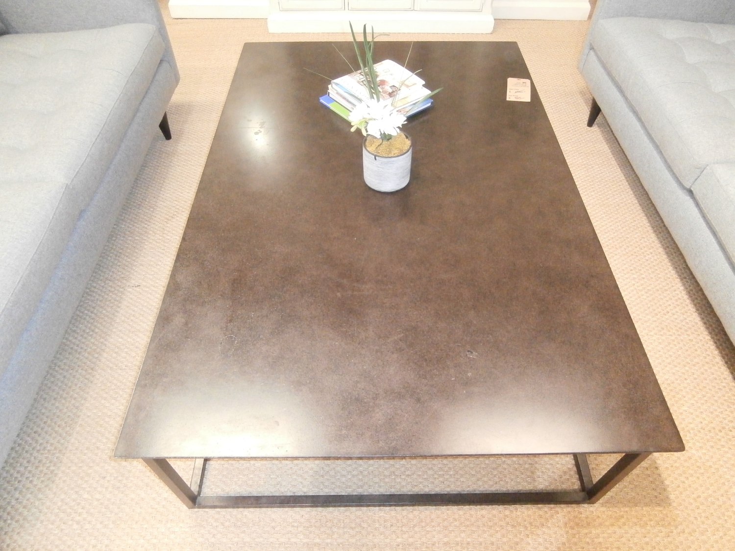 A design from the late 20th century, the Modernist metal table has the pared-down aesthetic of the industrial original. Built entirely of metal, it has a silhouette base that echoes the shape of the rectangular 43"W,67"D,17"H