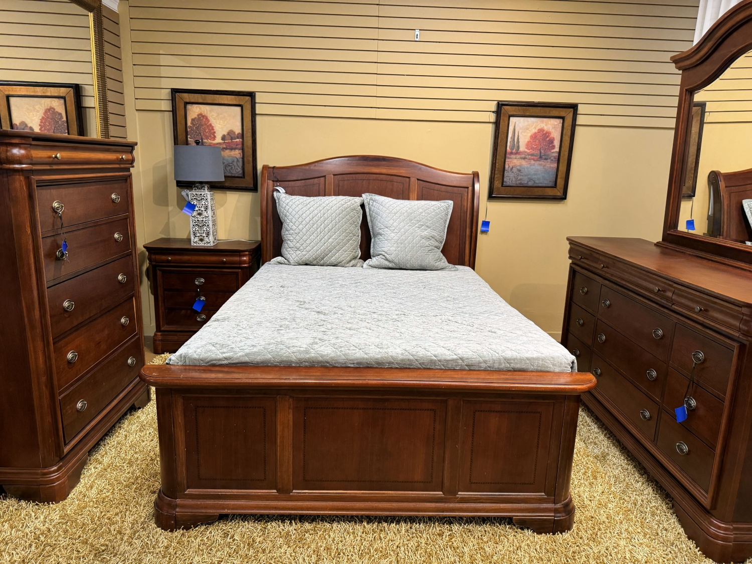 Vaughan Bassett traditional style queen bed in a rich dark finish. At posting, we have the matching pieces.