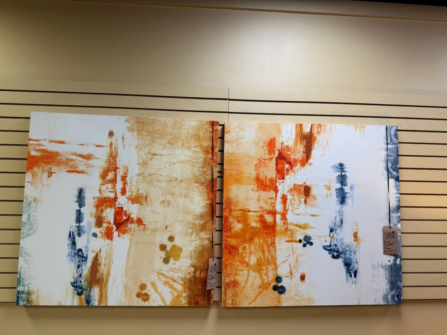 Chelsea Art Studio Tangerine Dreams II canvas art. The Tangerine Dream is a vibrant piece that captures the imagination with its bold hues & dynamic design. 40x40. At posting, we have two shown side by side here.