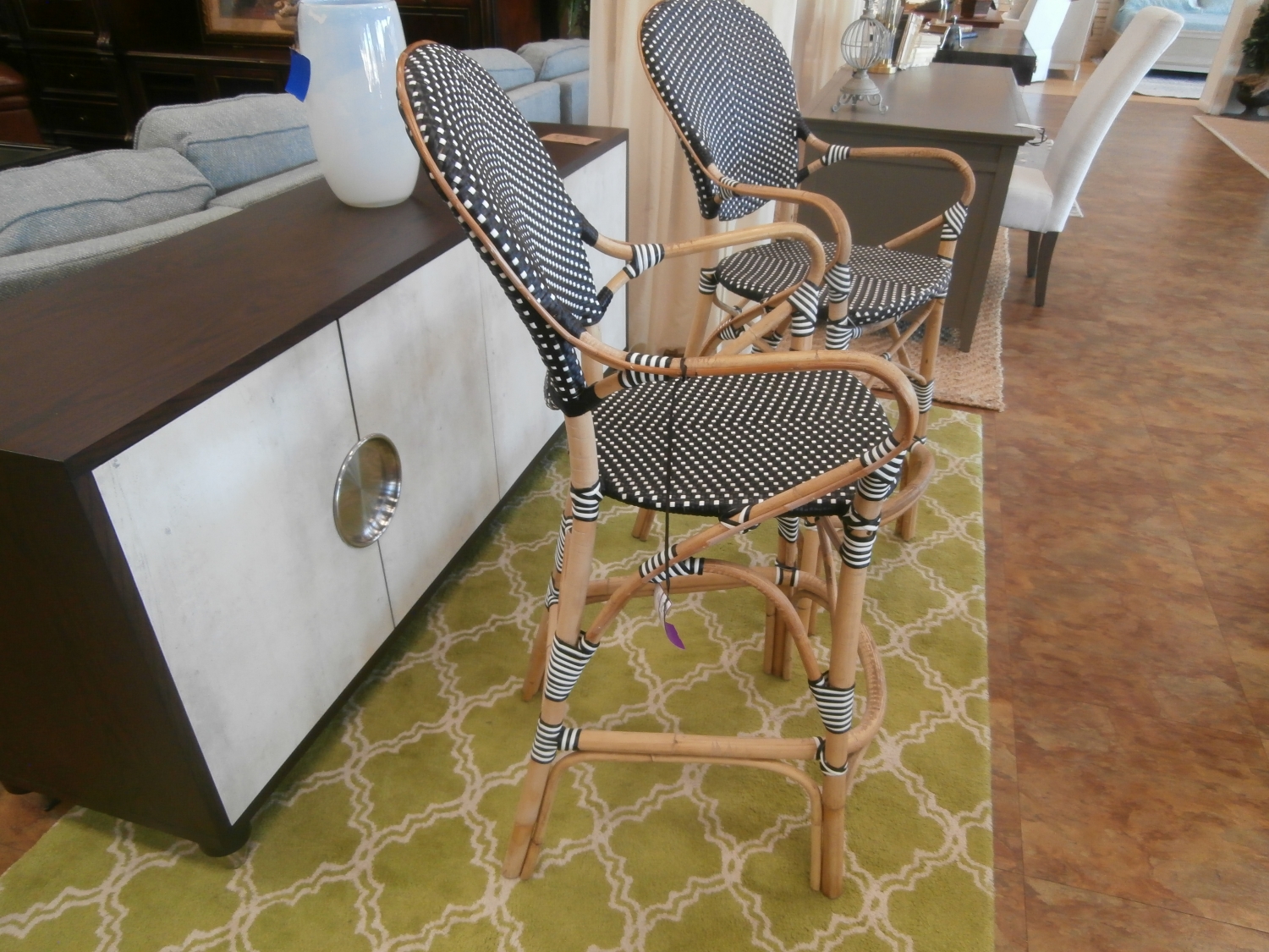Transport yourself to a French café with these charming and comfortable Paris Bistro Bar Stool. These colorful chairs derive their authentic look from strong bent rattan frame and a neatly handwoven seats & backs. 30"H