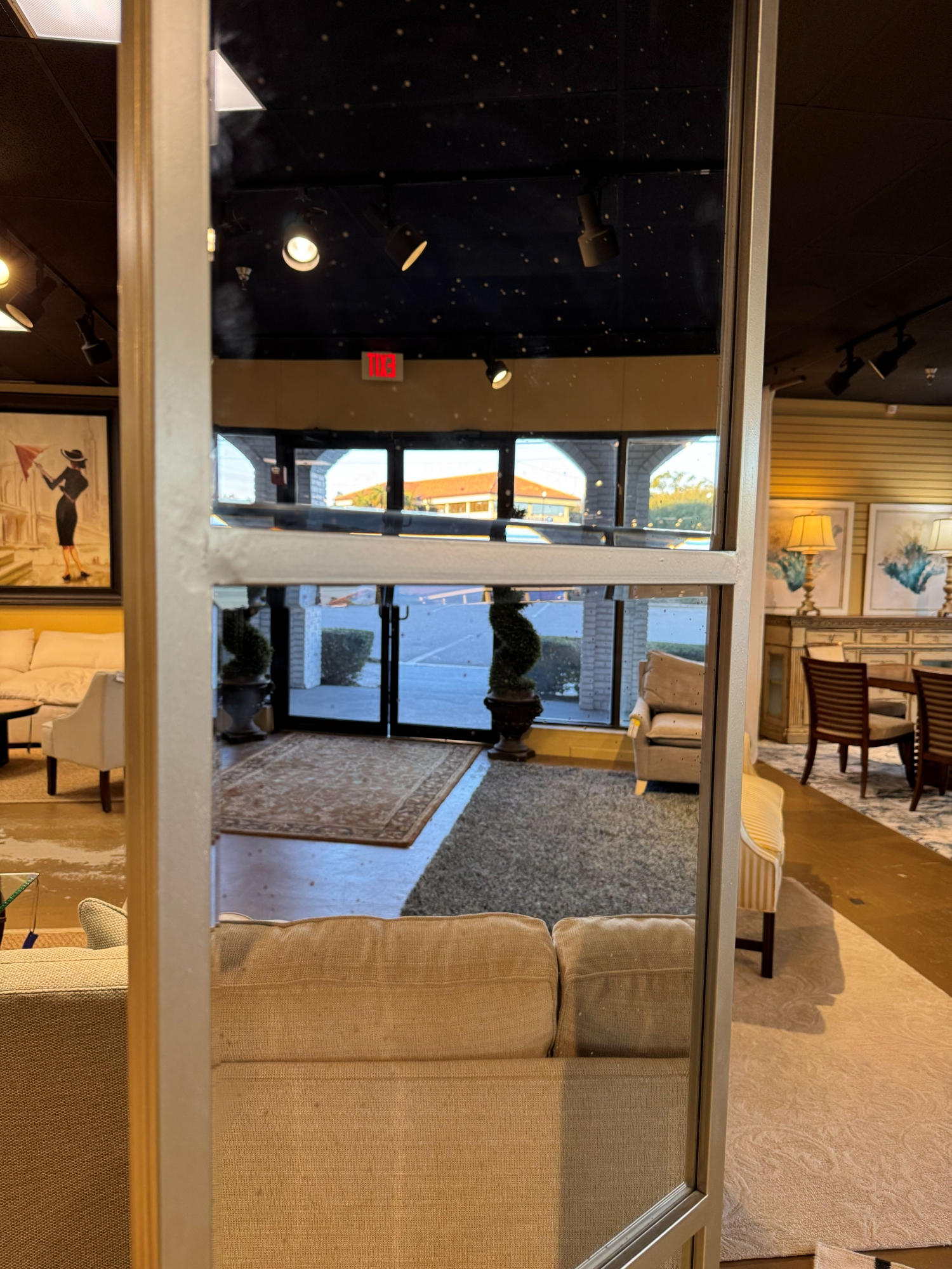 Contemporary style three panel screen in a speckled mirror finish on champagne frame. Measures 54"wide x 79"high.