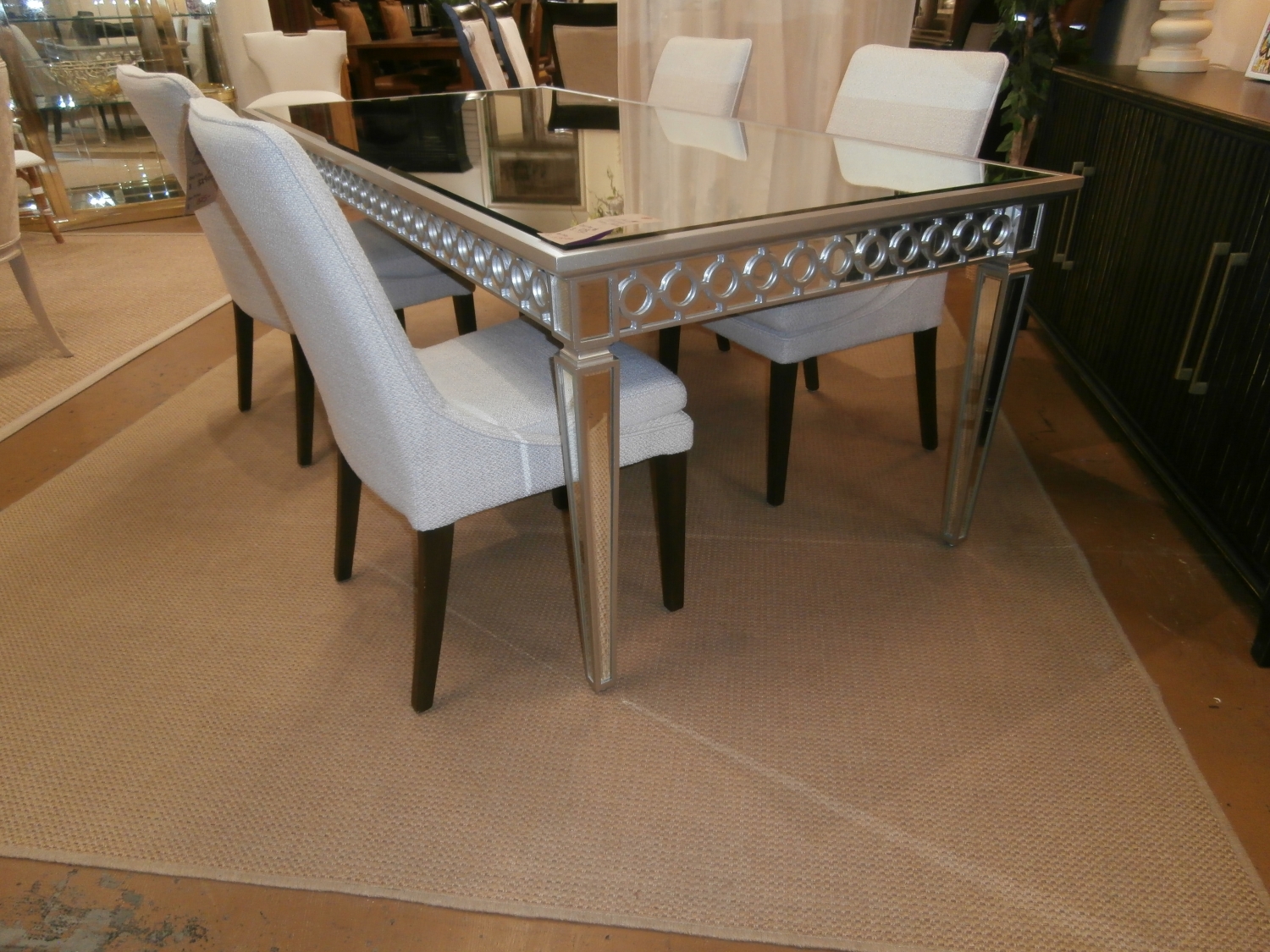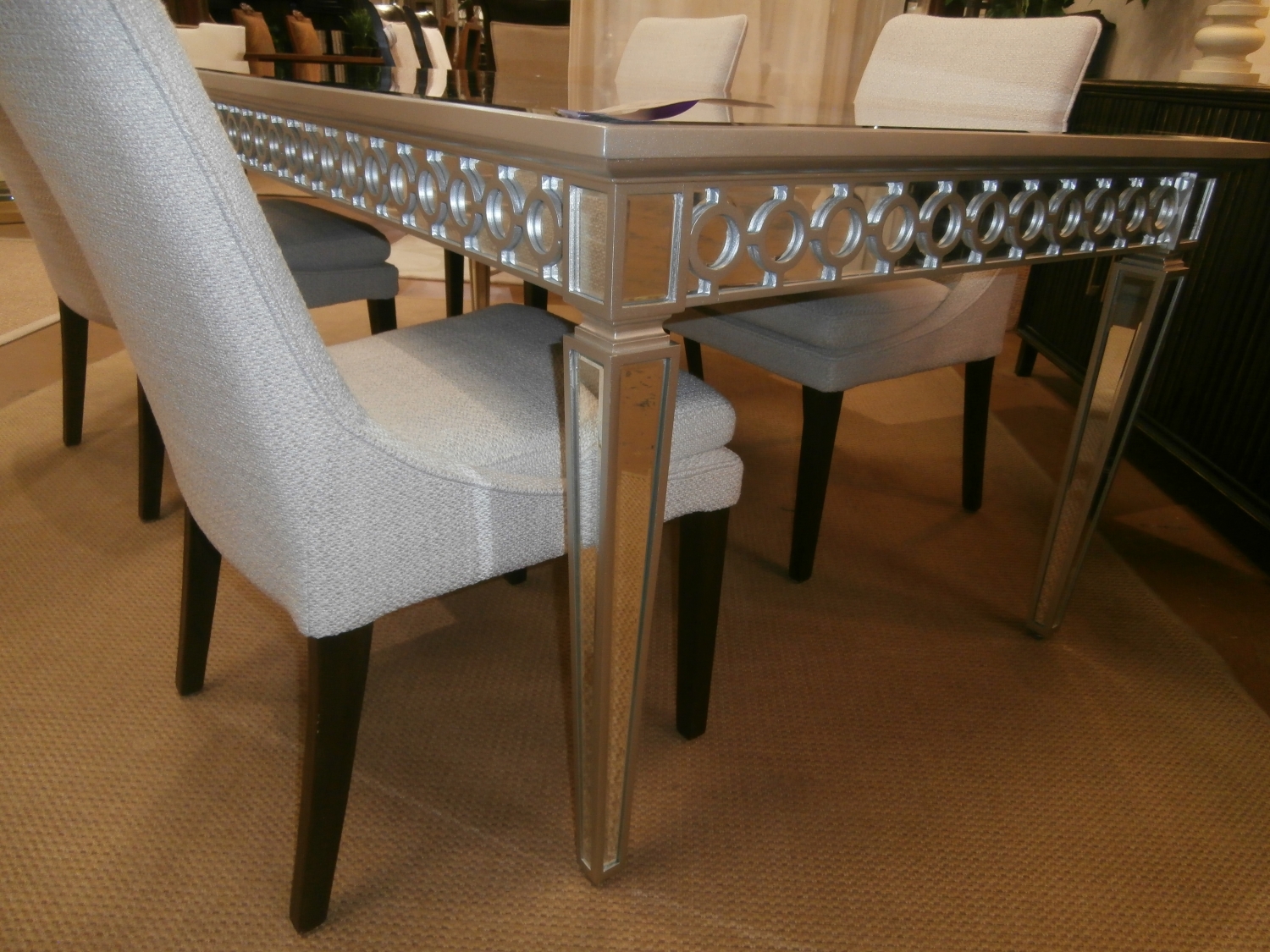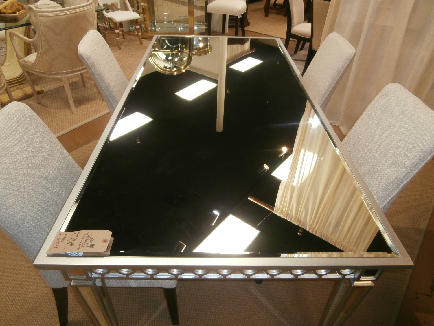 Sophisticated, graceful and elegant this Sophie mirrored dining table demonstrates style and restraint with its contemporary design. While elegantly reflecting its surroundings. Measures 84"W,40"D,31"H.