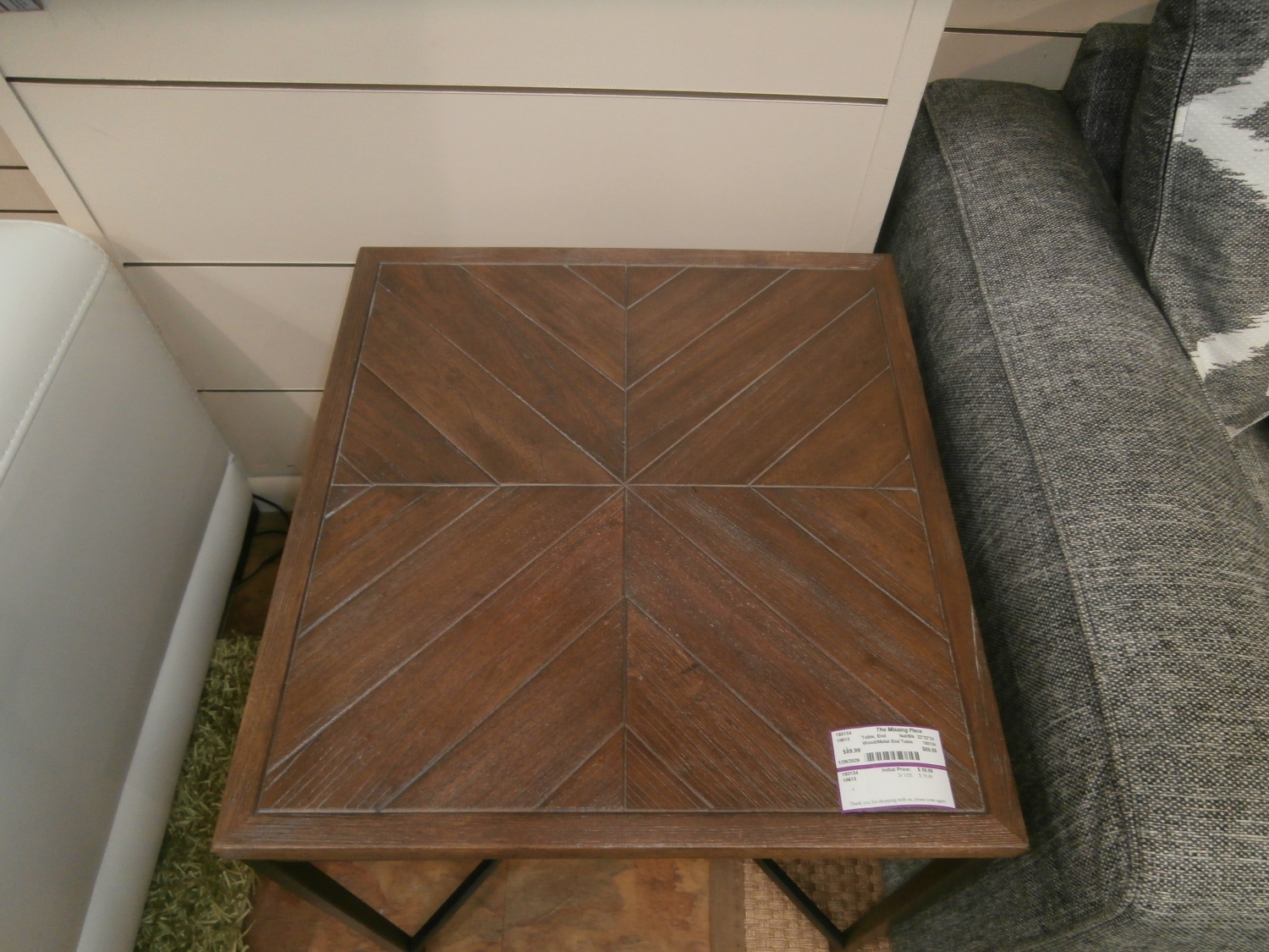 Wood/Metal end table measuring 22"W,22"D,24"H in natural and black. Matching pieces at time of post.