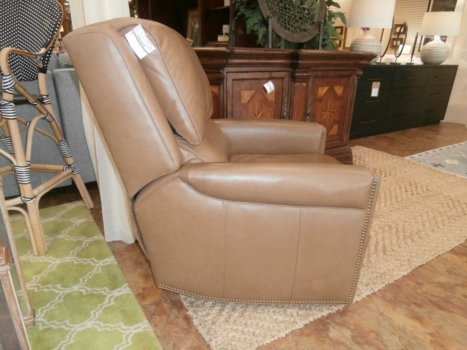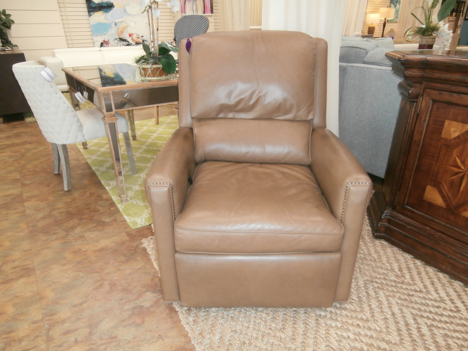Hancock & Moore Bing high-quality, handcrafted leather power reclining chair designed for comfort and style, featuring a modern, sleek profile. Measures 30"W,40"D,42"H in brown.