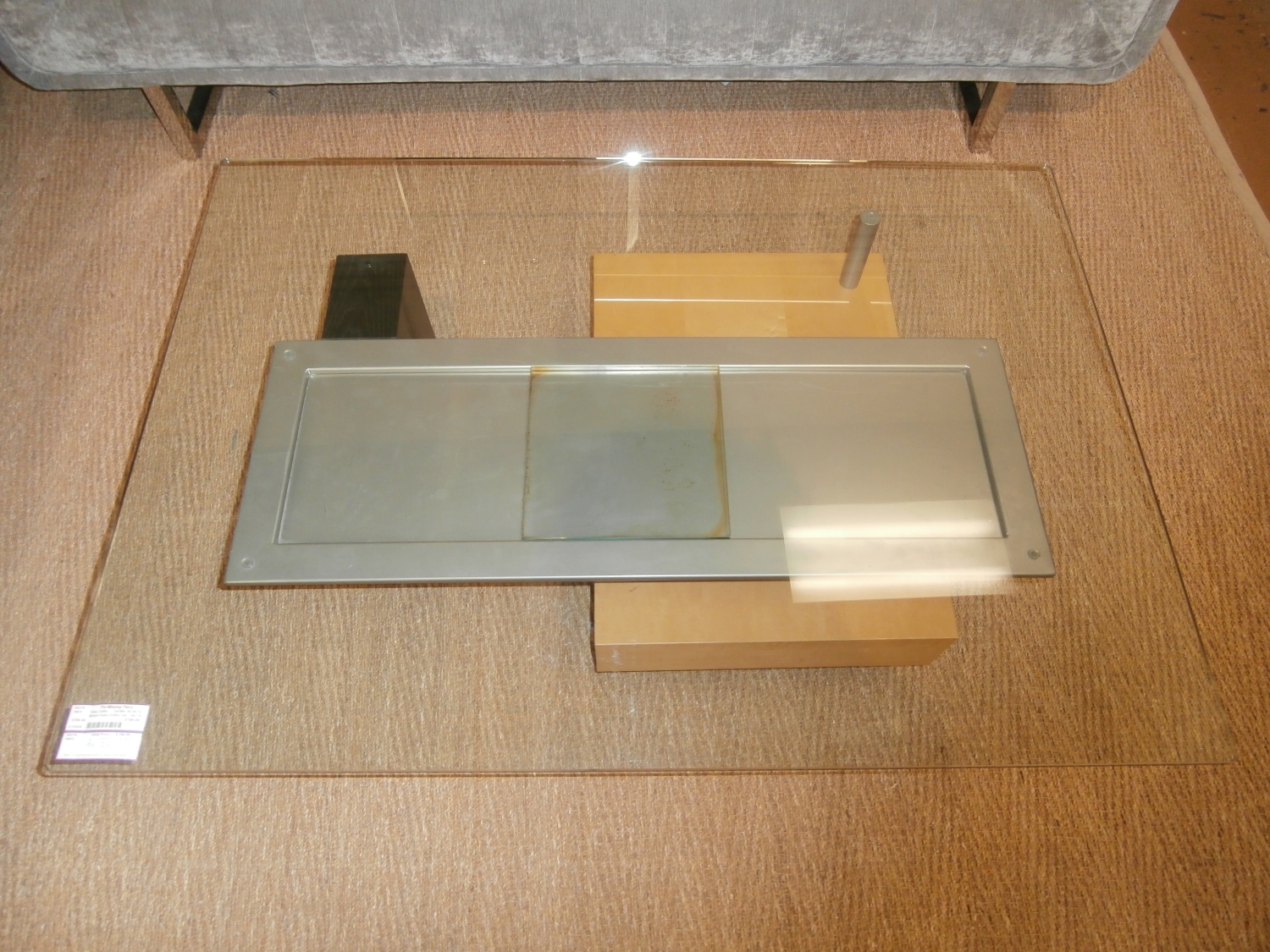Item #193235. Modern glass coffee table with etched top measuring 54"W,30"D,16"H.