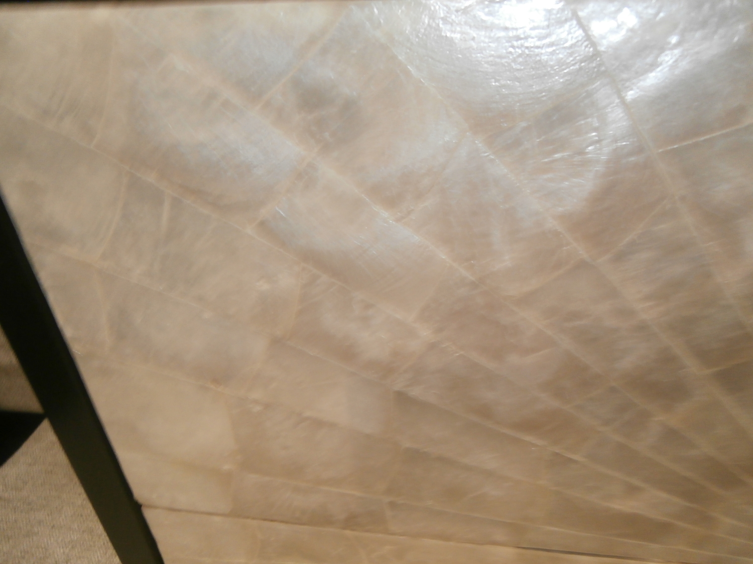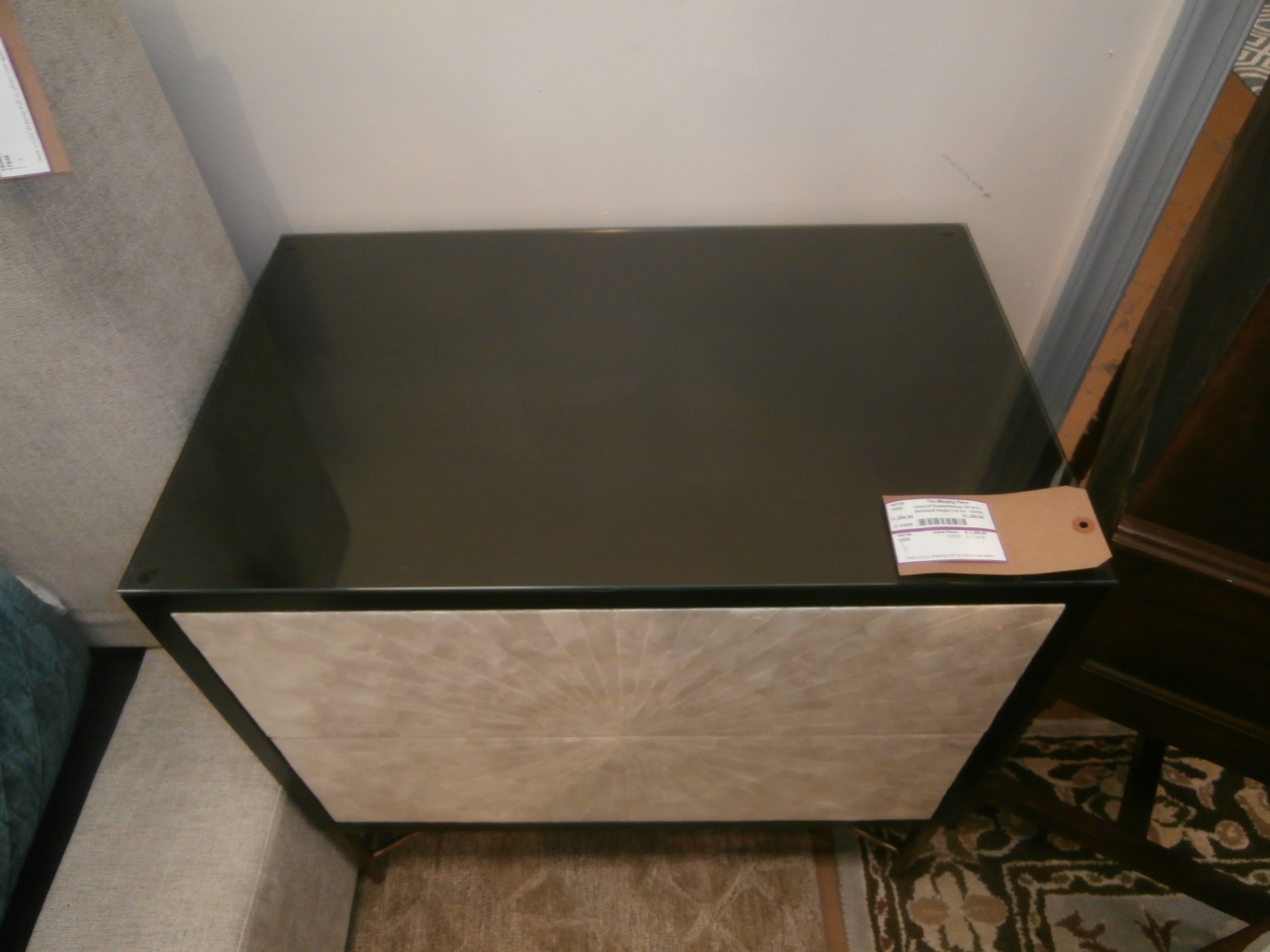 Elevate your bedroom with the Adagio Nightstand. Crafted from solid gmelina and cherry veneers with a rich Espresso finish,features touch-to-open drawers adorned with pearlescent capiz shells. Measures 30"W,19"D,31"H.