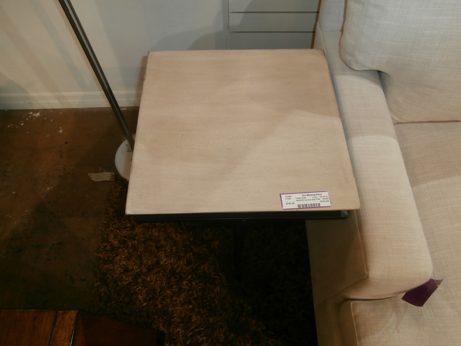 Carson end table in light dove on black metal frame. Unique inverted pyramid shape. Measures 16"W,16"D,25"H. Two at time of post.