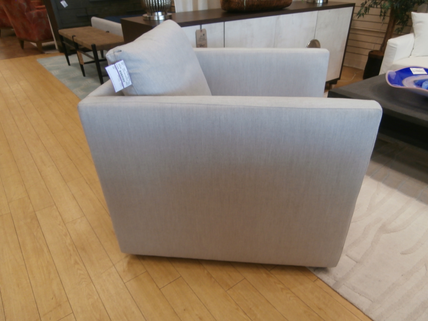 Elevate your seating experience with the Arhaus swivel chair. This versatile and stylish chair is designed for both comfort and durability. Measures 31"W,35"D,37"H in grey. Two at time of post.