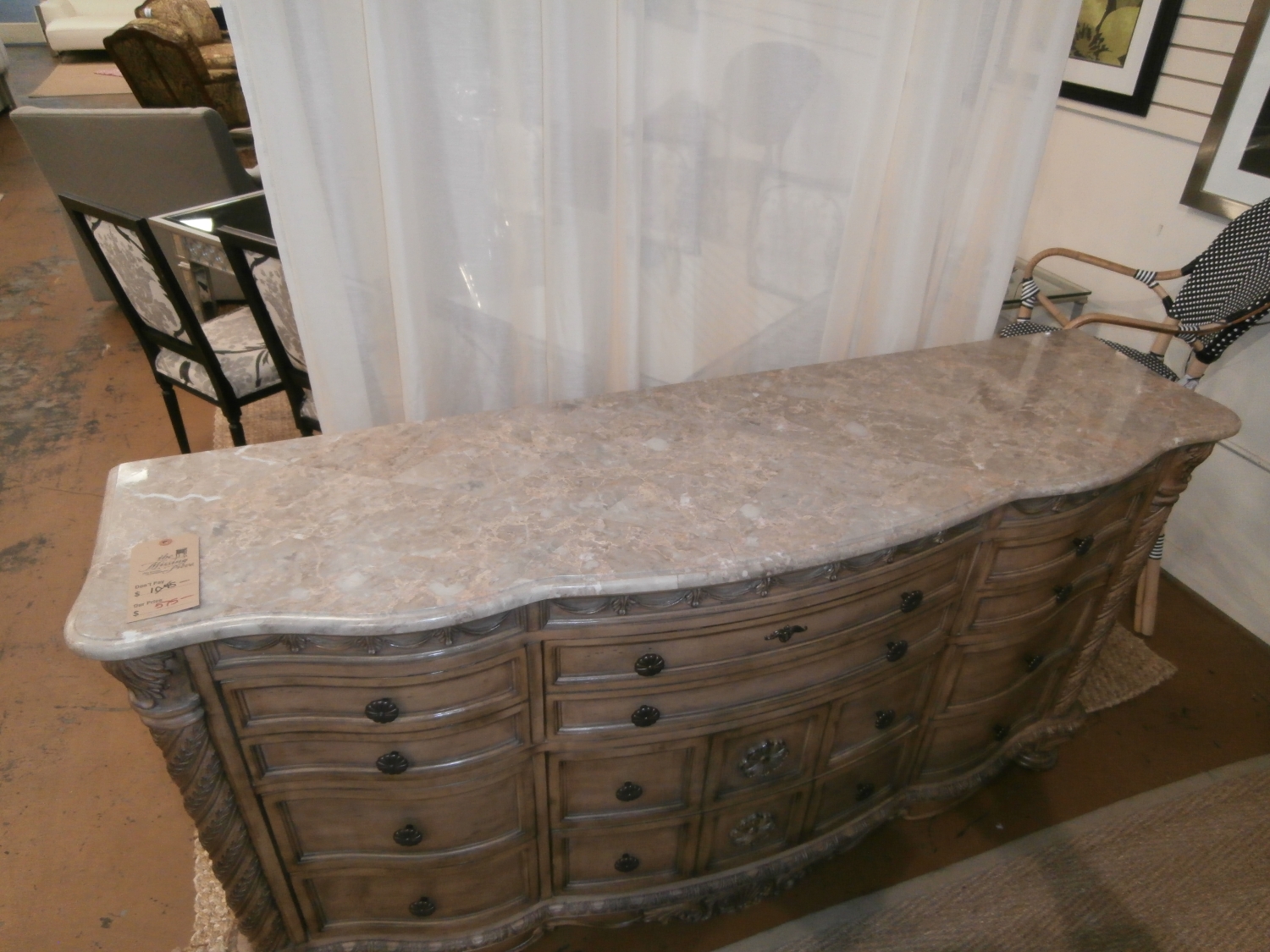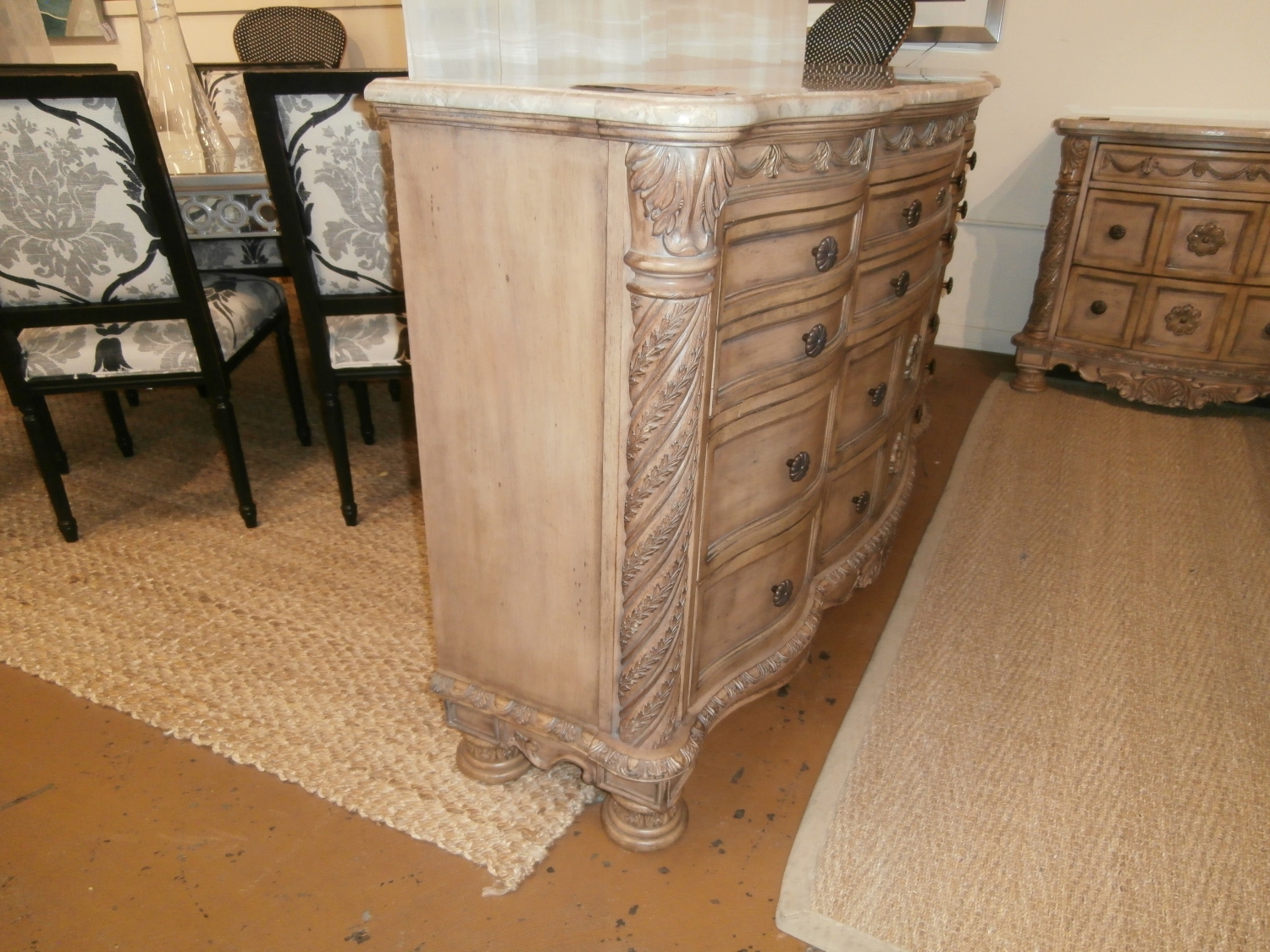 Alive with detail and South Shore look, this Ashley dresser is adorned with ornate hand applied decorations covered with the beautiful glazed bisque color and plenty of storage. Measures 72"W,20"D,39"H.
