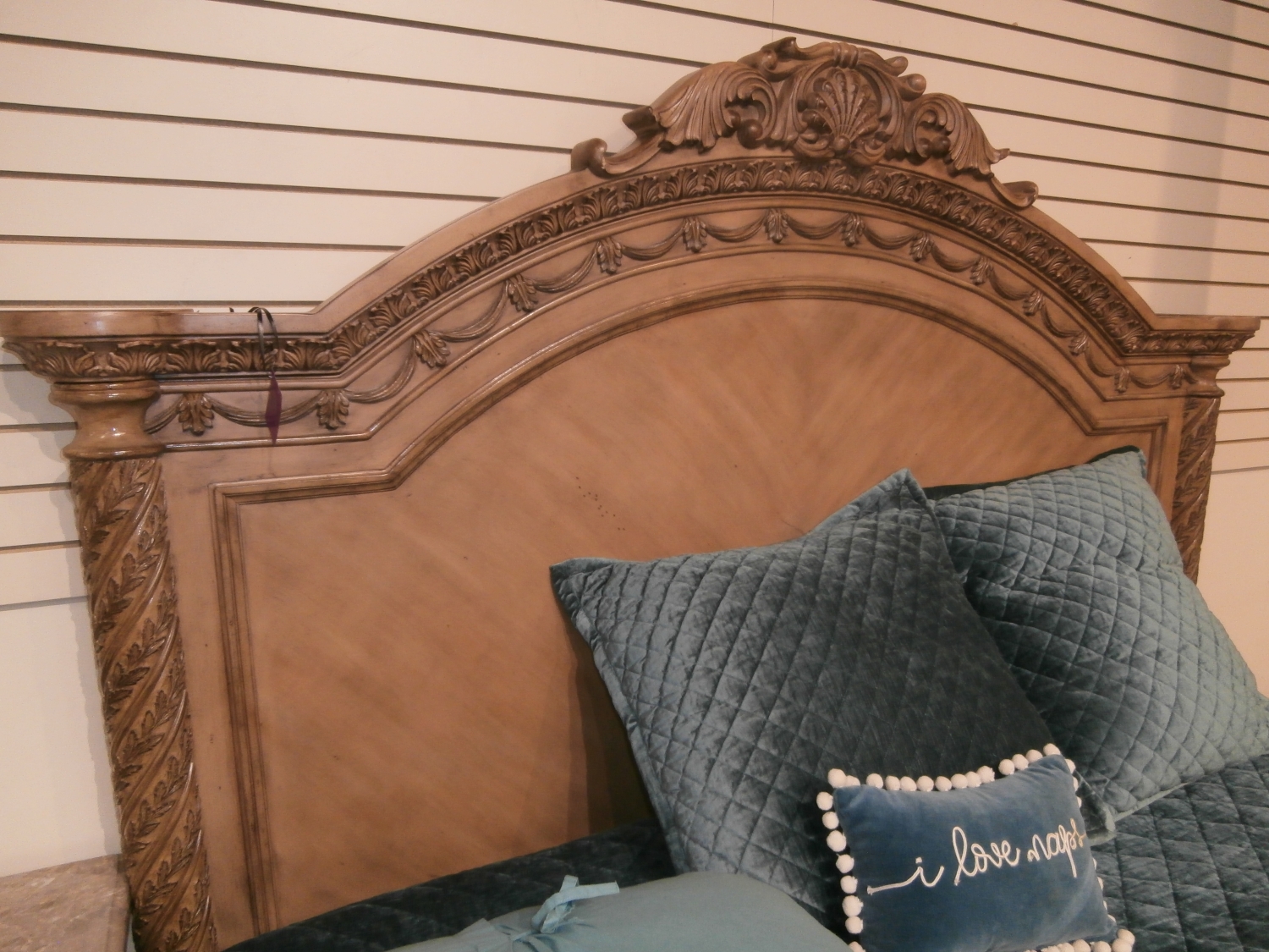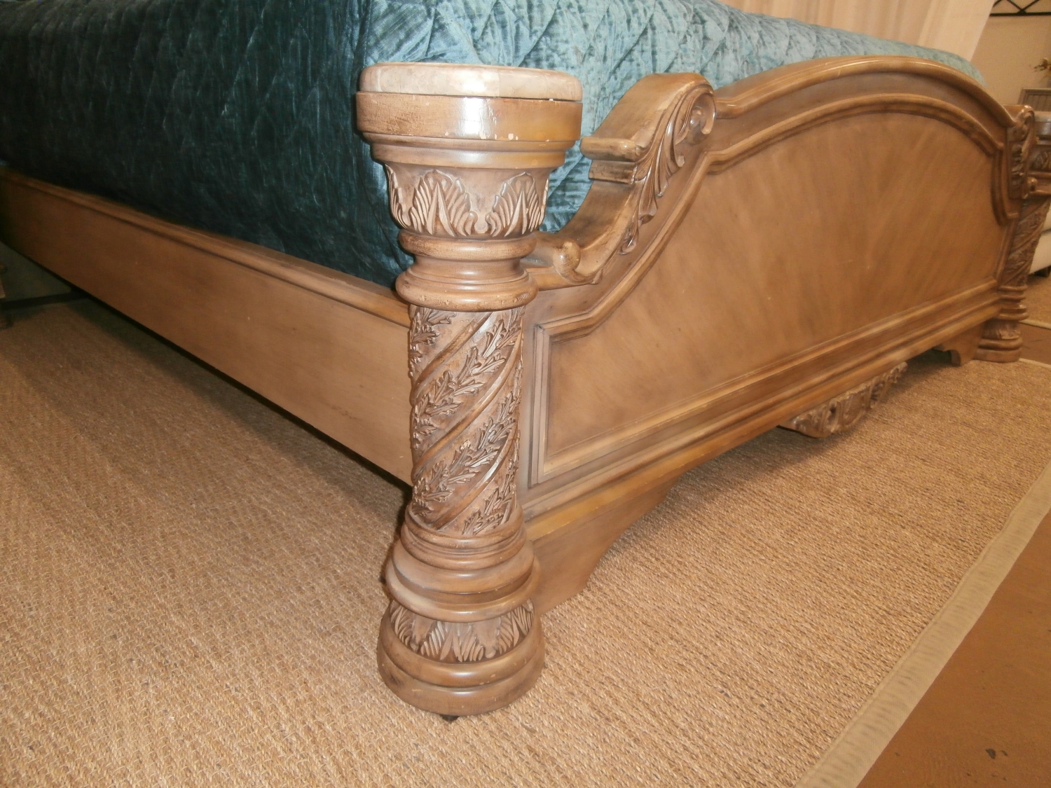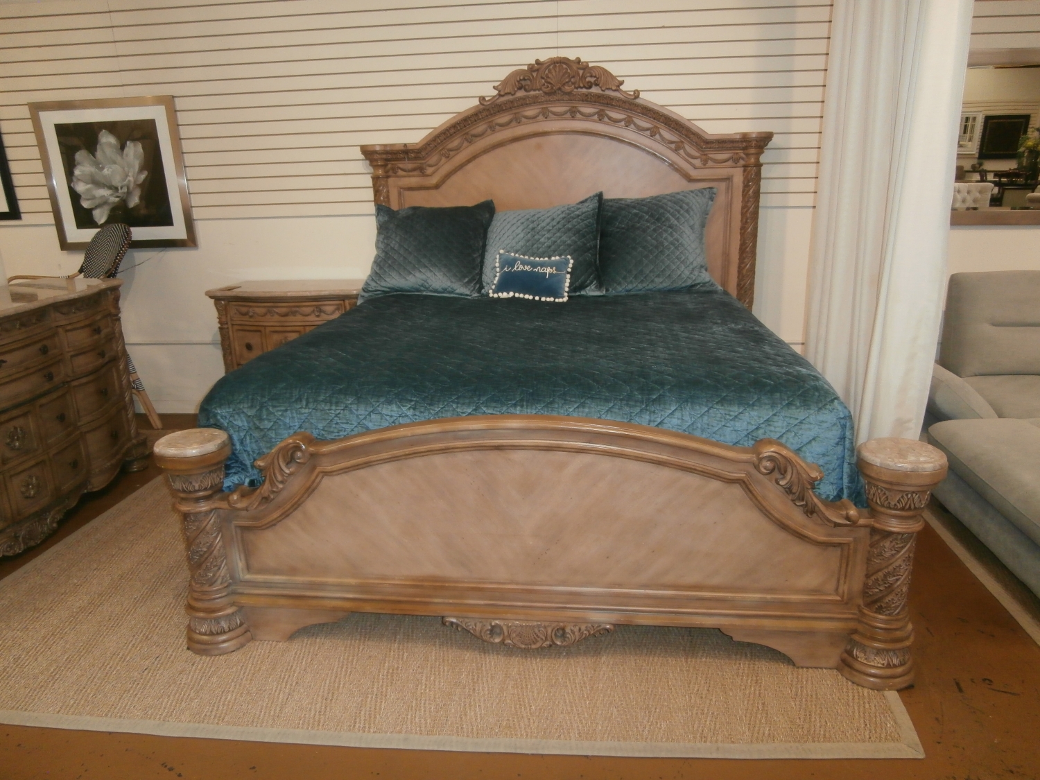 Alive with detail and South Shore look, this king bed is adorned with ornate hand applied decorations covered with the beautiful glazed bisque color.