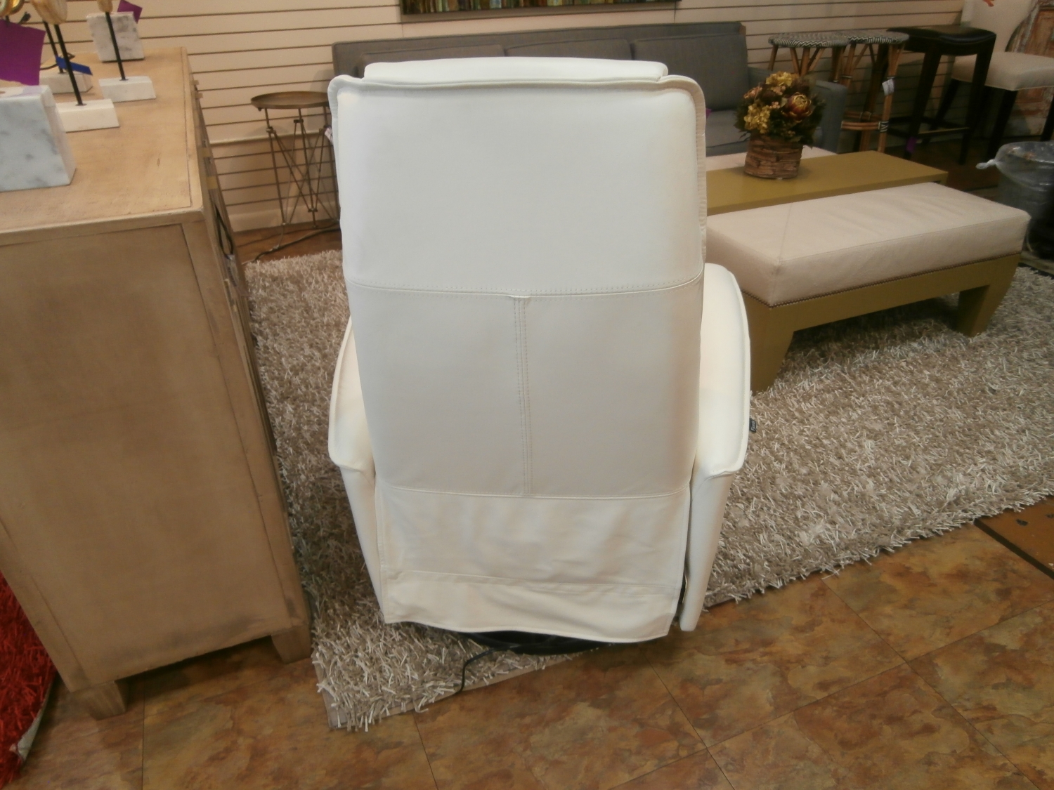 Fjords Urban small power recline swivel swing relaxer recliner chair in Soft Line leather measuring 32"W,33"D,43"H in ivory.