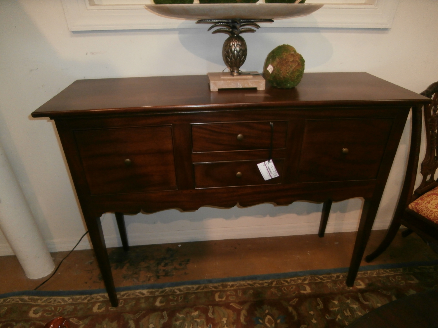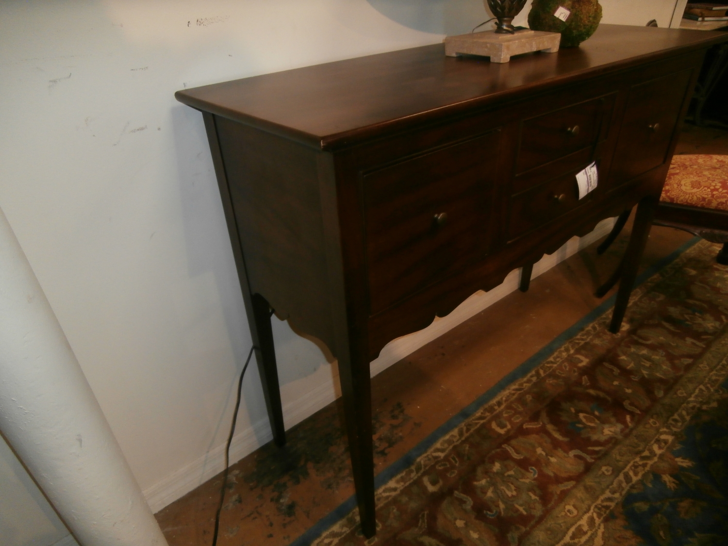 Traditional Century buffet with two doors and two drawers for storage. Just the rignt height for serving. Measures 52"W,18"D,40"H in brown.