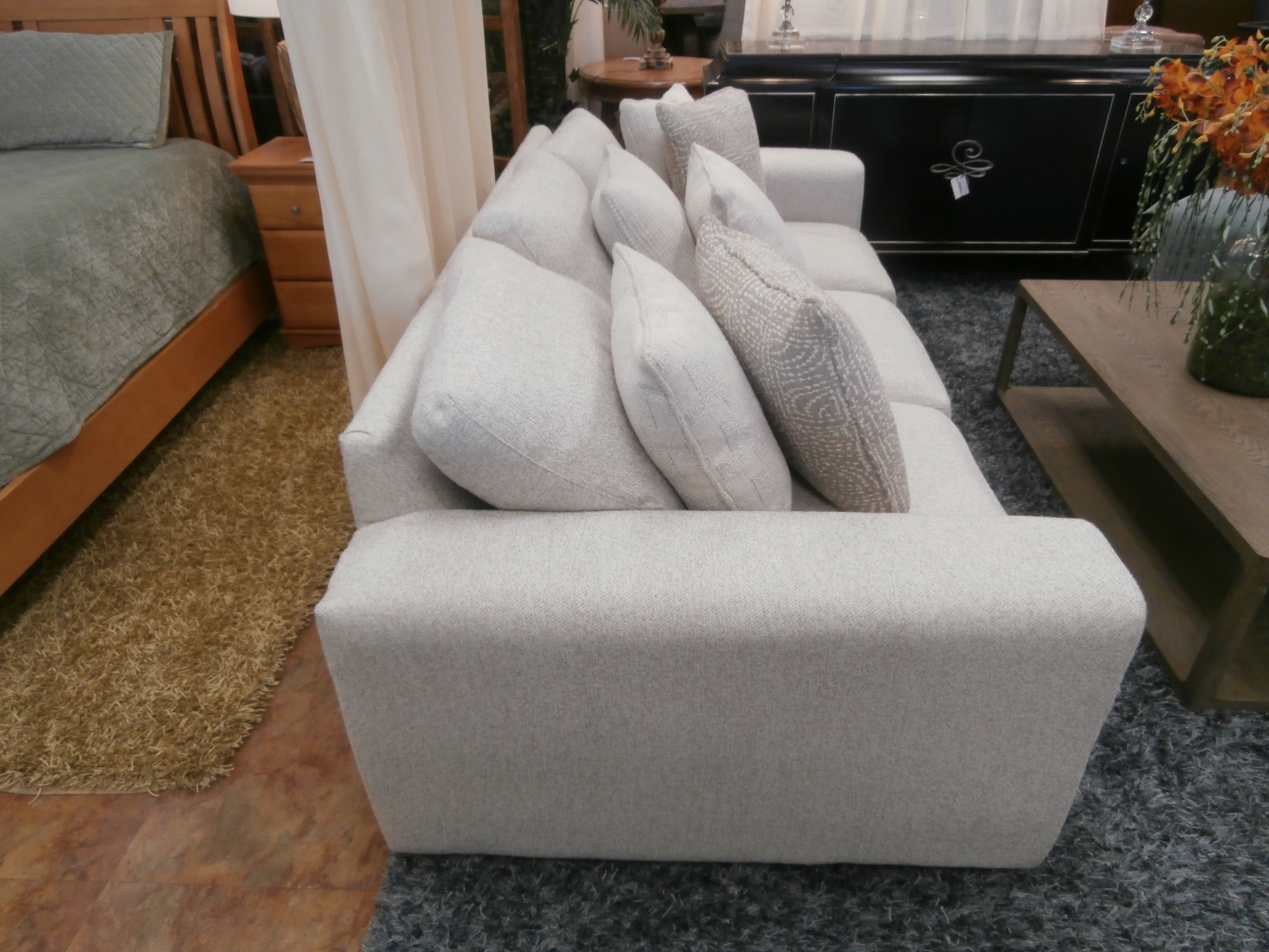 Fushion three cushion sofa with accent pillows measuring 97"W,44"D,35"H in creme.