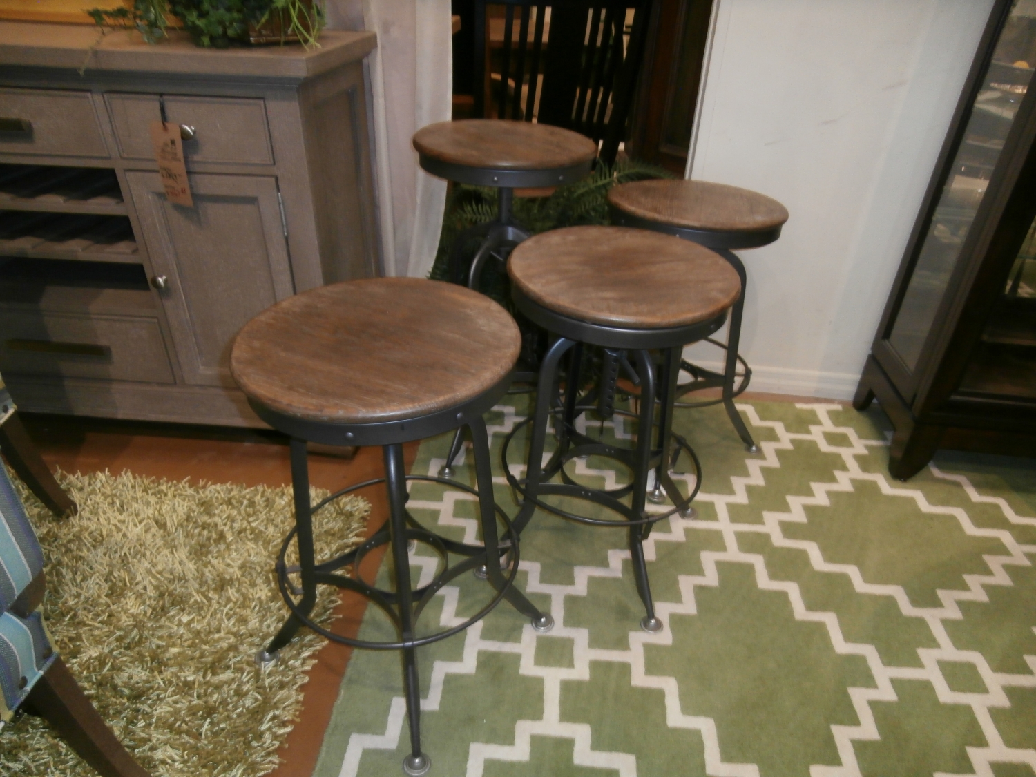 Item #192731. Set of four Madison parson barstools measuring 26"H in grey and black.