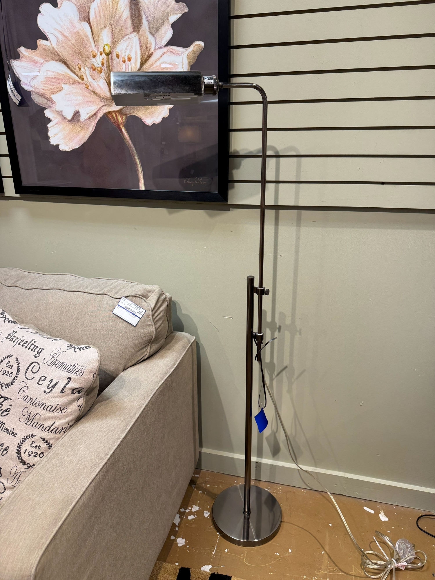 Mid century modern style pharmacy floor lamp in gunmetal finish. 58"tall.