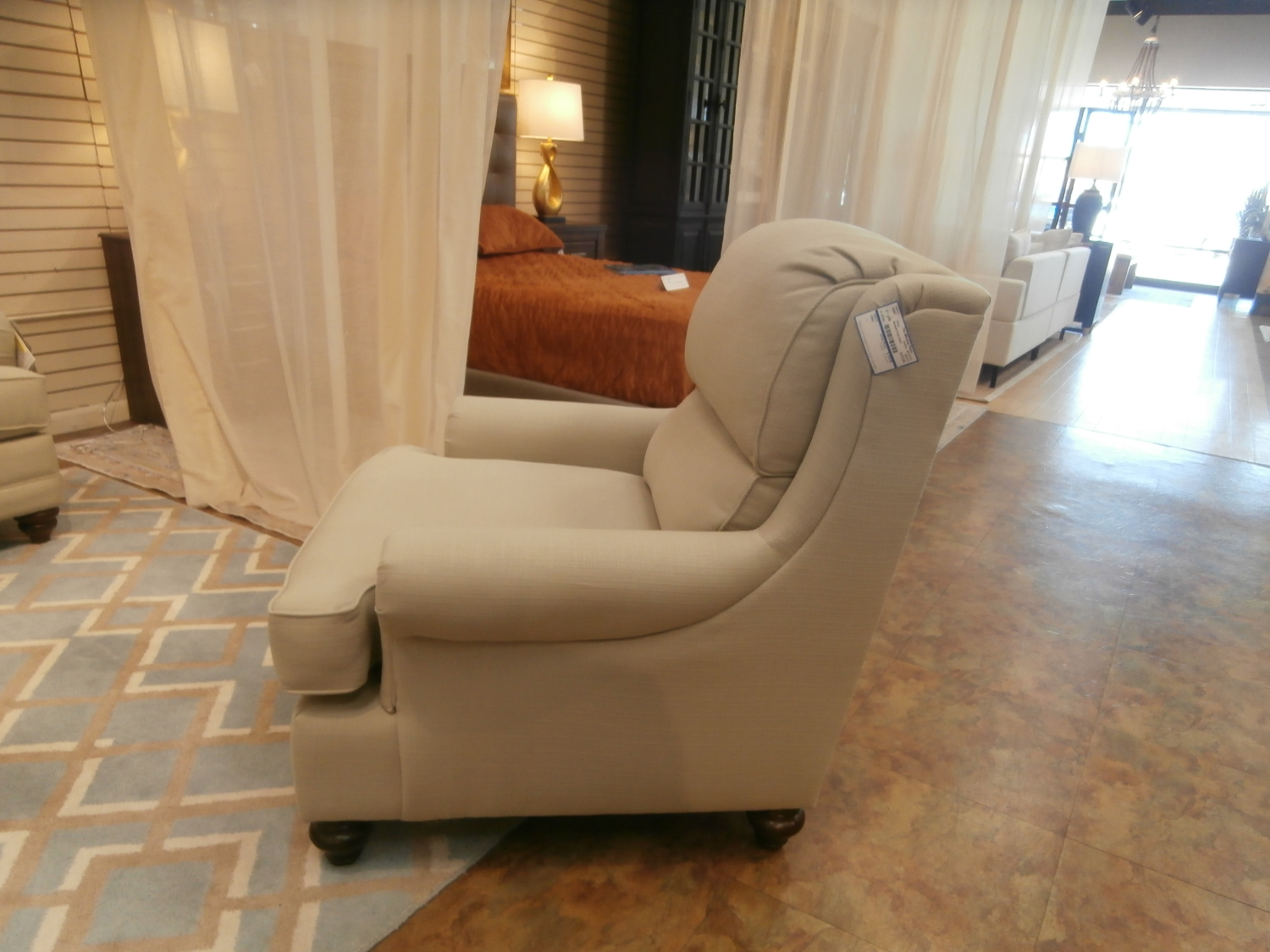 Bassett club chair measuring 36"W,37"D,41"H in creme. Matching sofa at time of post.