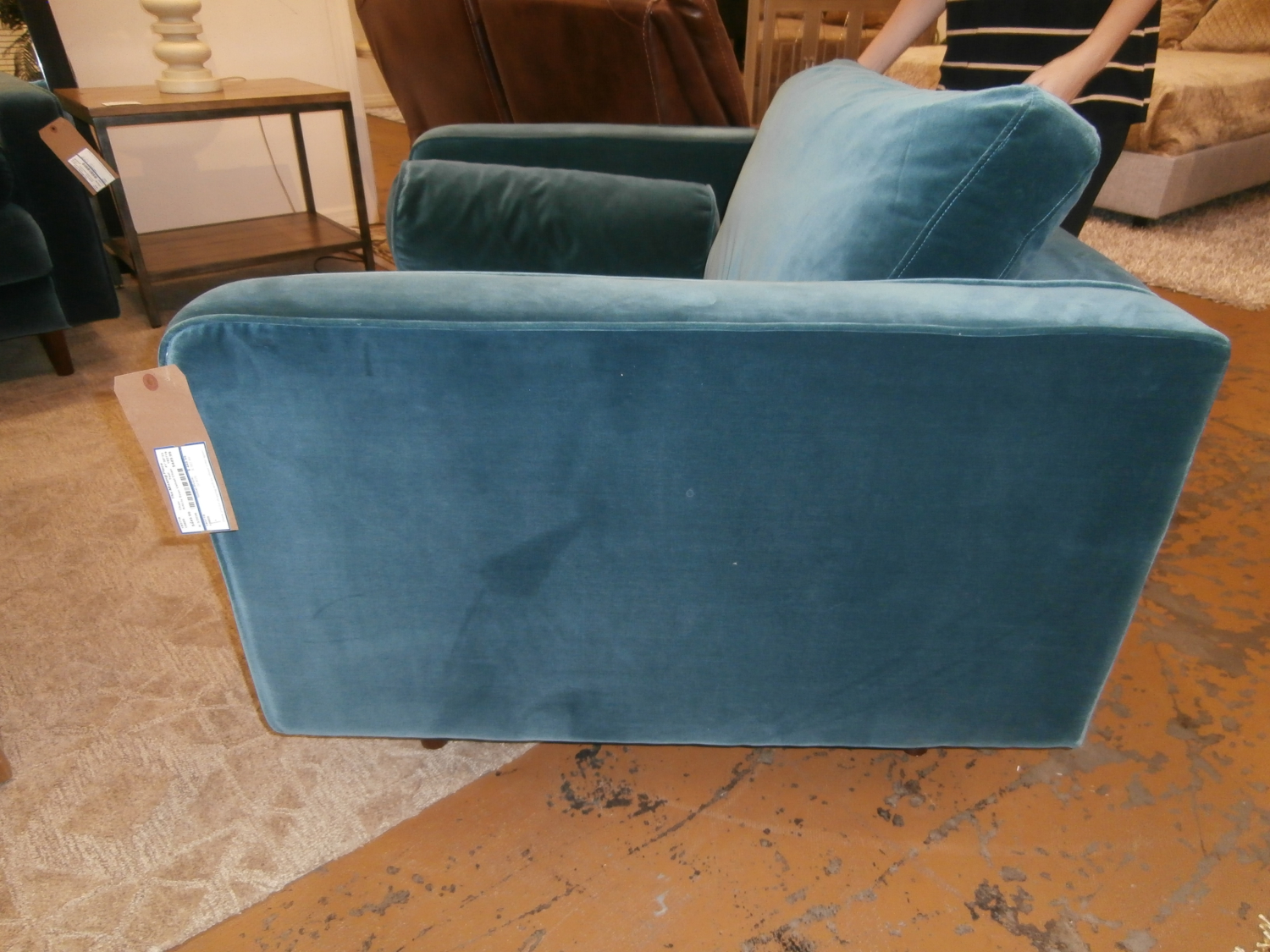 Whatever you do, feel like royalty in your home atop this modern velvet take on a mid-century classic. The Article Sven chair measures 41"W,38"D,33"H in Pacific blue. Matching pieces at post.