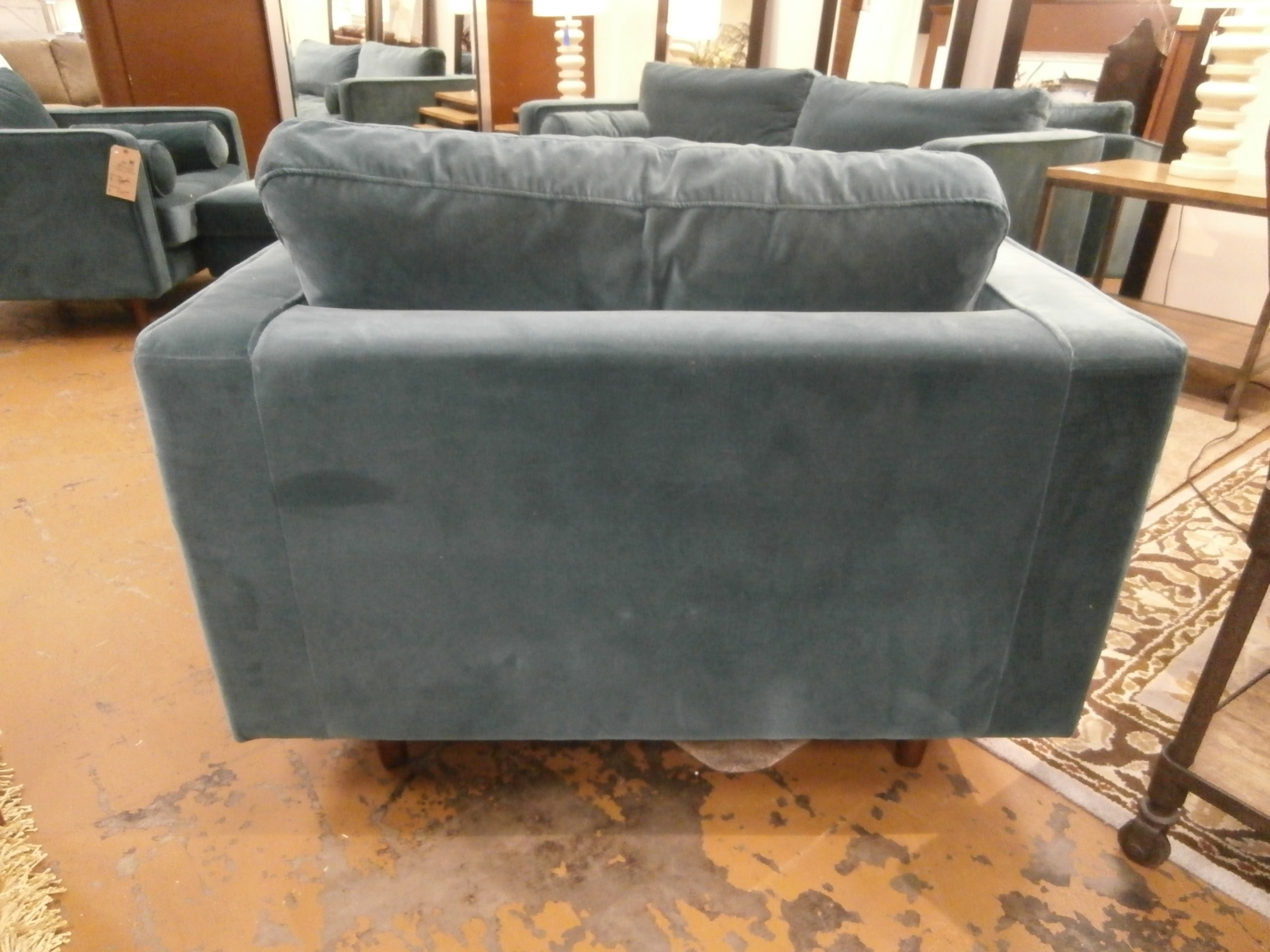 Whatever you do, feel like royalty in your home atop this modern velvet take on a mid-century classic. The Article Sven chair measures 41"W,38"D,33"H in Pacific blue. Matching pieces at post.