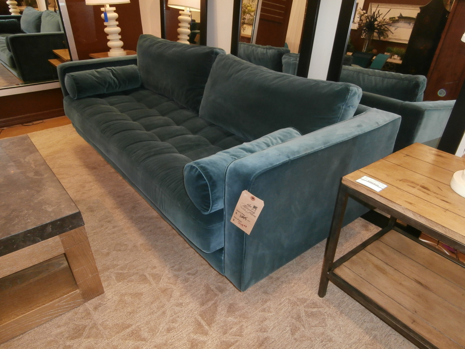Whatever you do, feel like royalty in your home atop this modern velvet take on a mid-century classic. The Article Sven sofa measures 88"W,38"D,34"H in Pacific blue. Matching pieces at post.