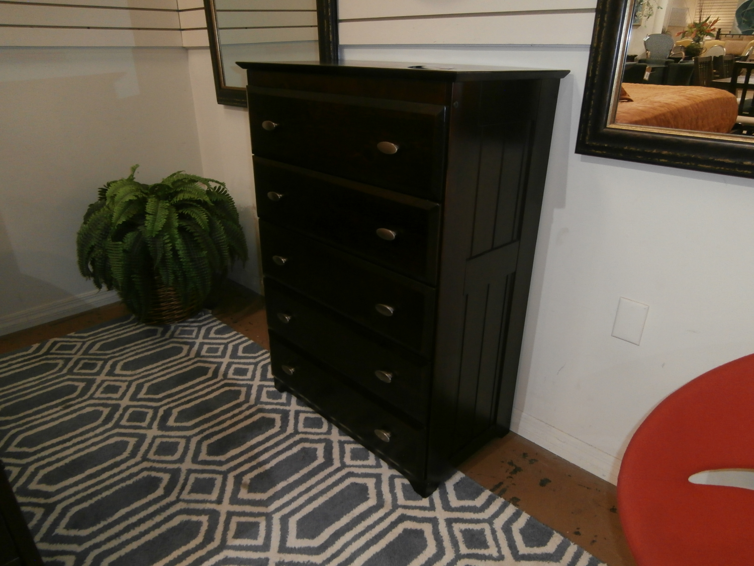 Your search for the perfect 5 draw chest of drawers can finally end. This Discorvery five drawer chest is it. Measures 30"W,17"D,43"H in brown.