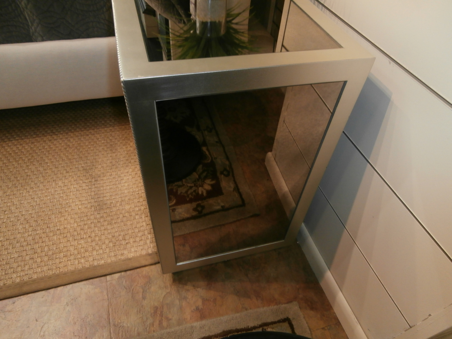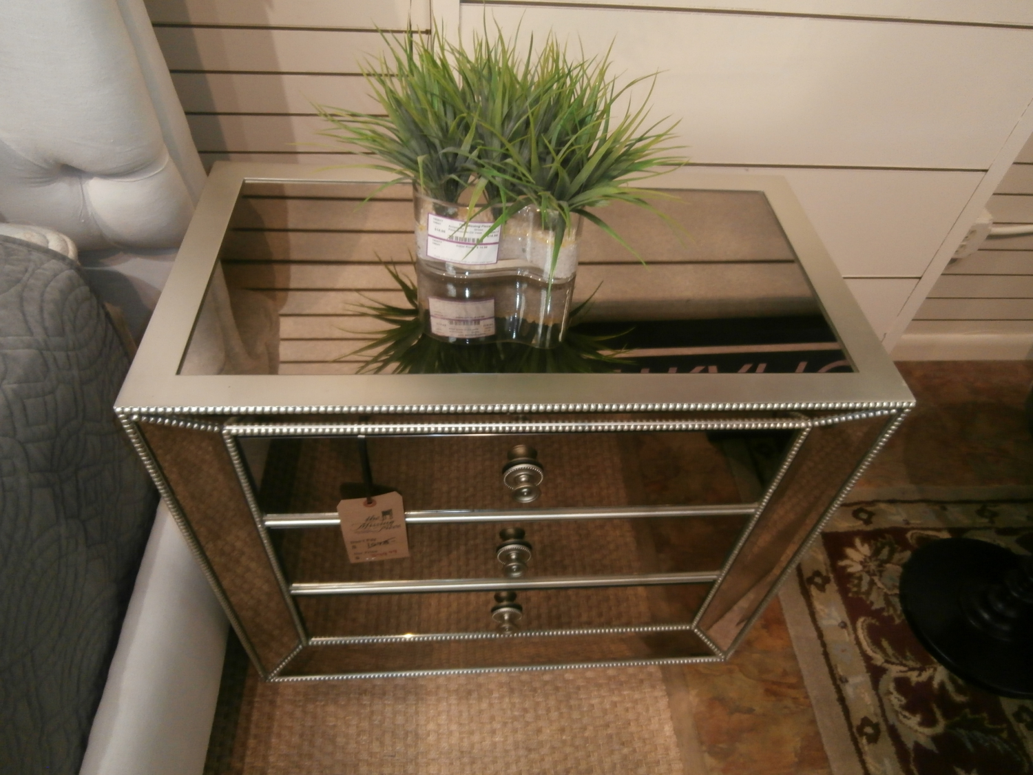 ZGallerie Omni chest with a faux-metal sheen bringing a glam edge to this piece, accomplished by silver leaf added on piece by piece and a super shiny glaze. With three drawers it measures 32"W,18"D,30"H. Two at posting.