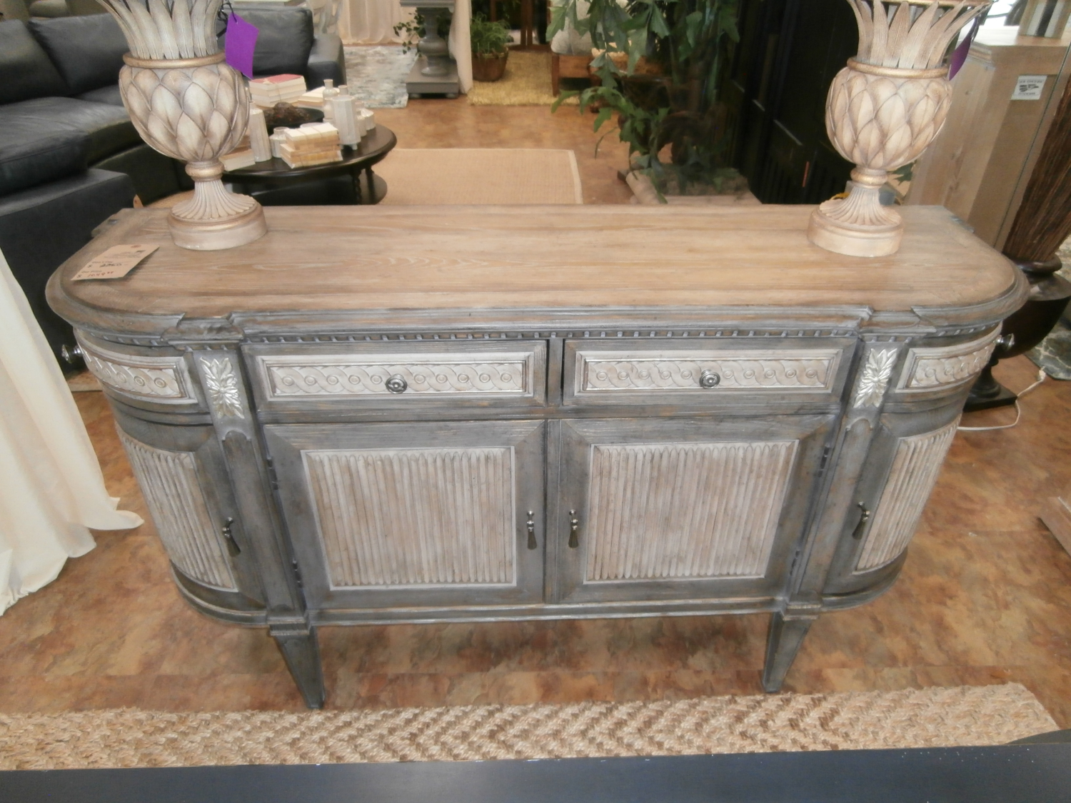 This timeless piece is straight out of the Paris of an earlier, more genteel era. Give a sense of well-traveled style to your home with this opulent yet livable server finished in Quartz Grey. Measures 66"W,20"D,3"H.
