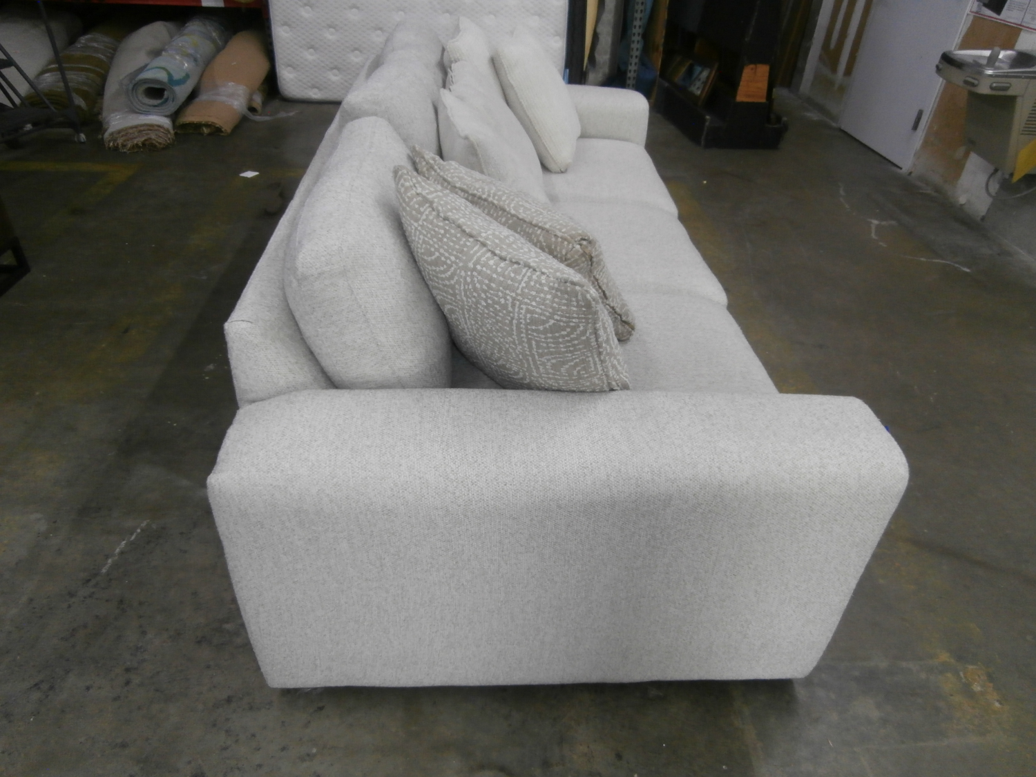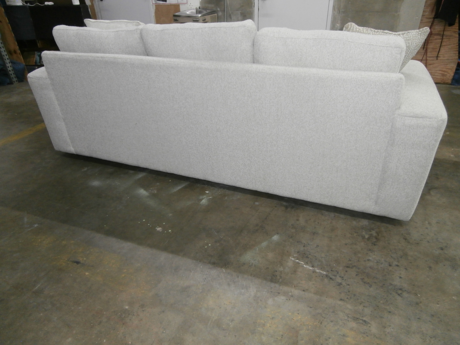 Fushion three cushion sofa with accent pillows measuring 97"W,44"D,35"H in creme.