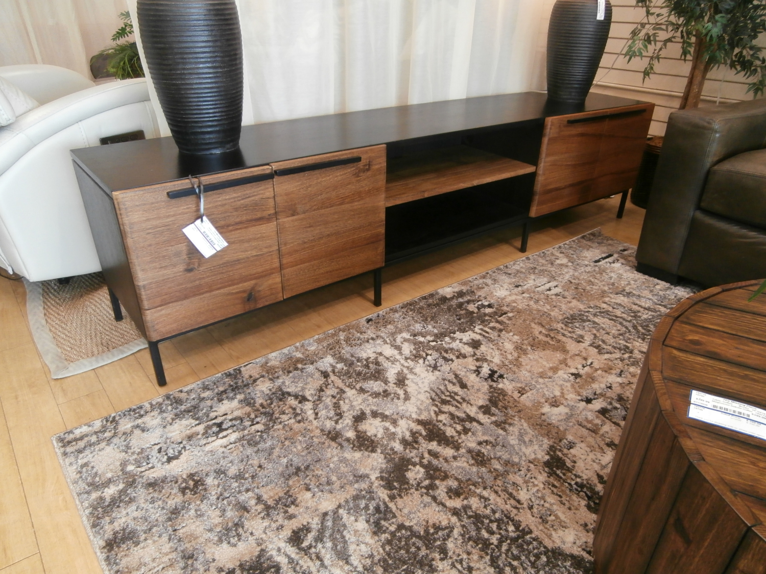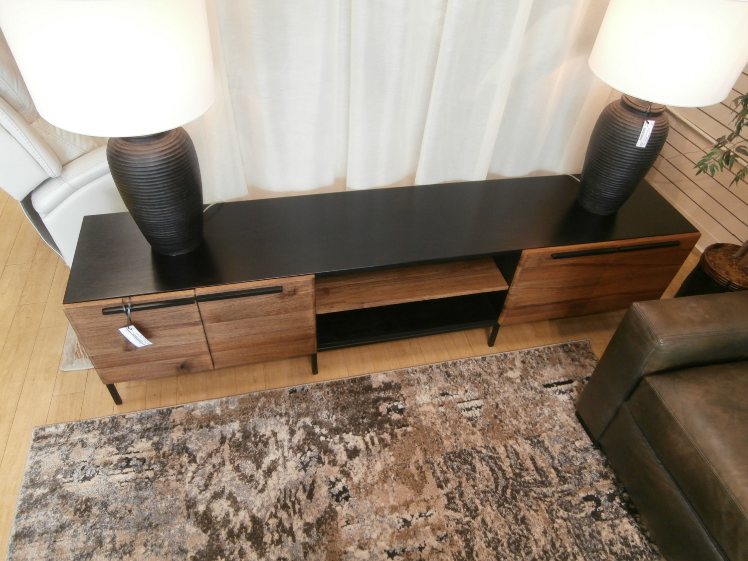 Crate & Barrel Media Stand measuring 81"W,18"D,20"H with storage and an area for your components.
