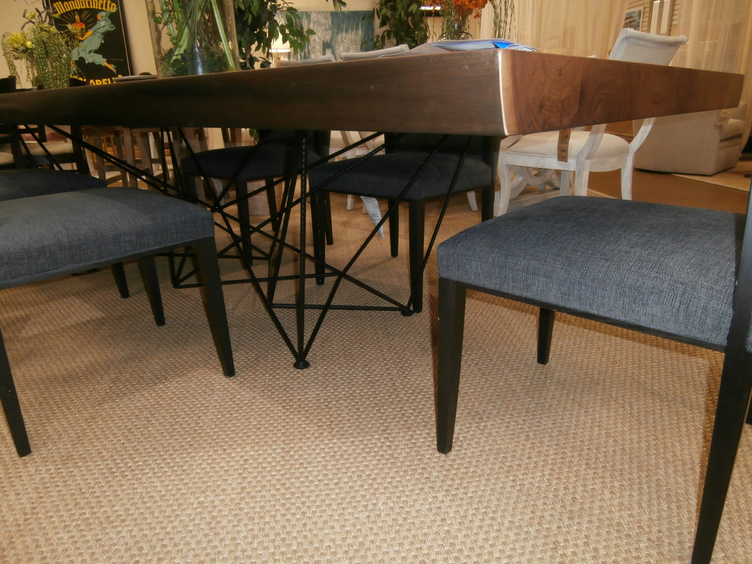 The Gordon deep wood table epitomizes the trend towards rustic modern design and makes a grand impression in the home. The crisscross accents of the sculptural base use a playful amount of geometry. Measures 118"W,47"D,30"H.