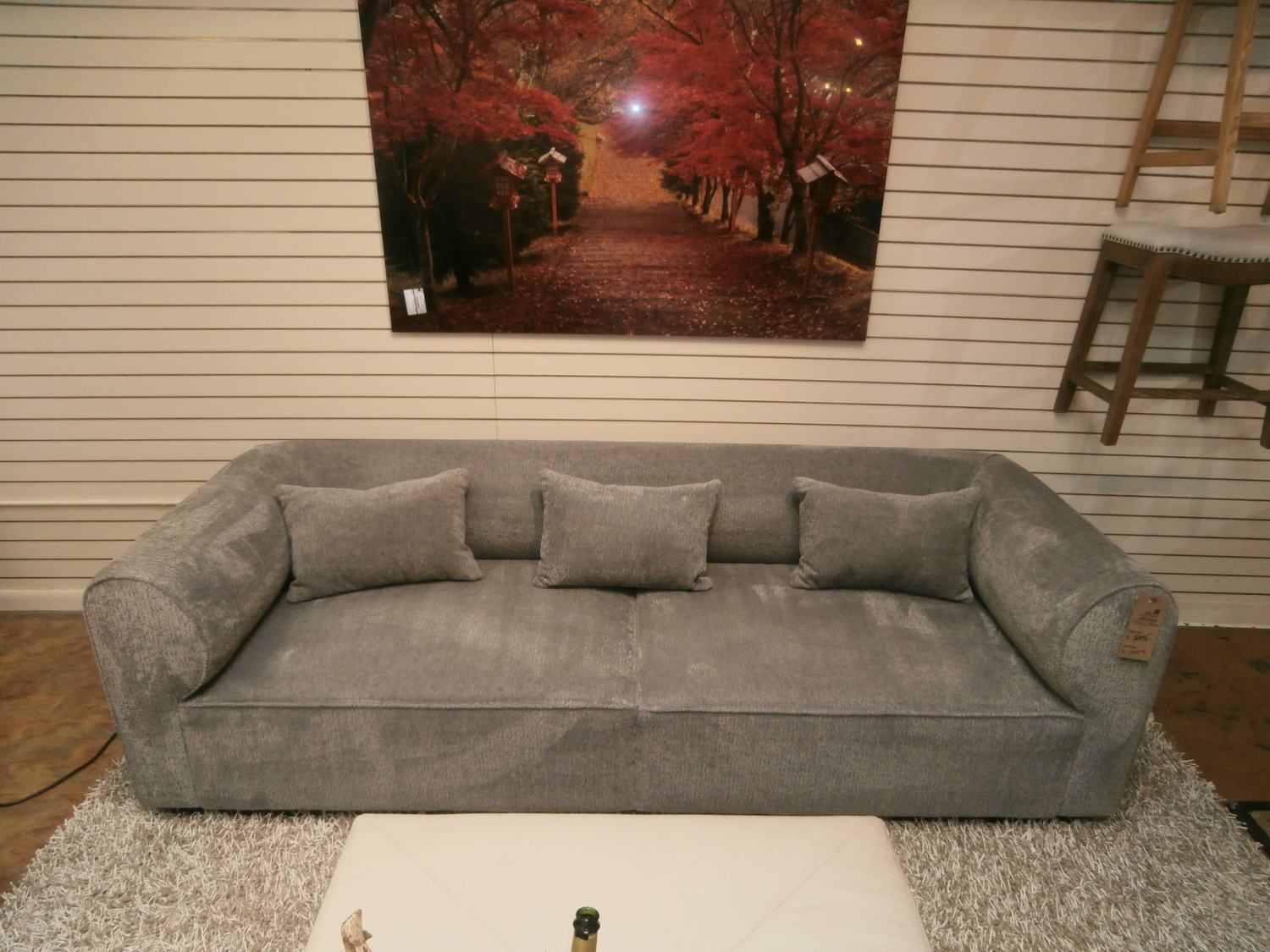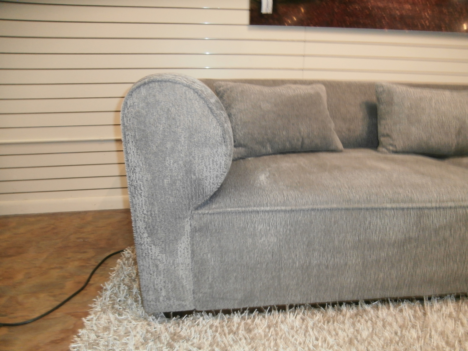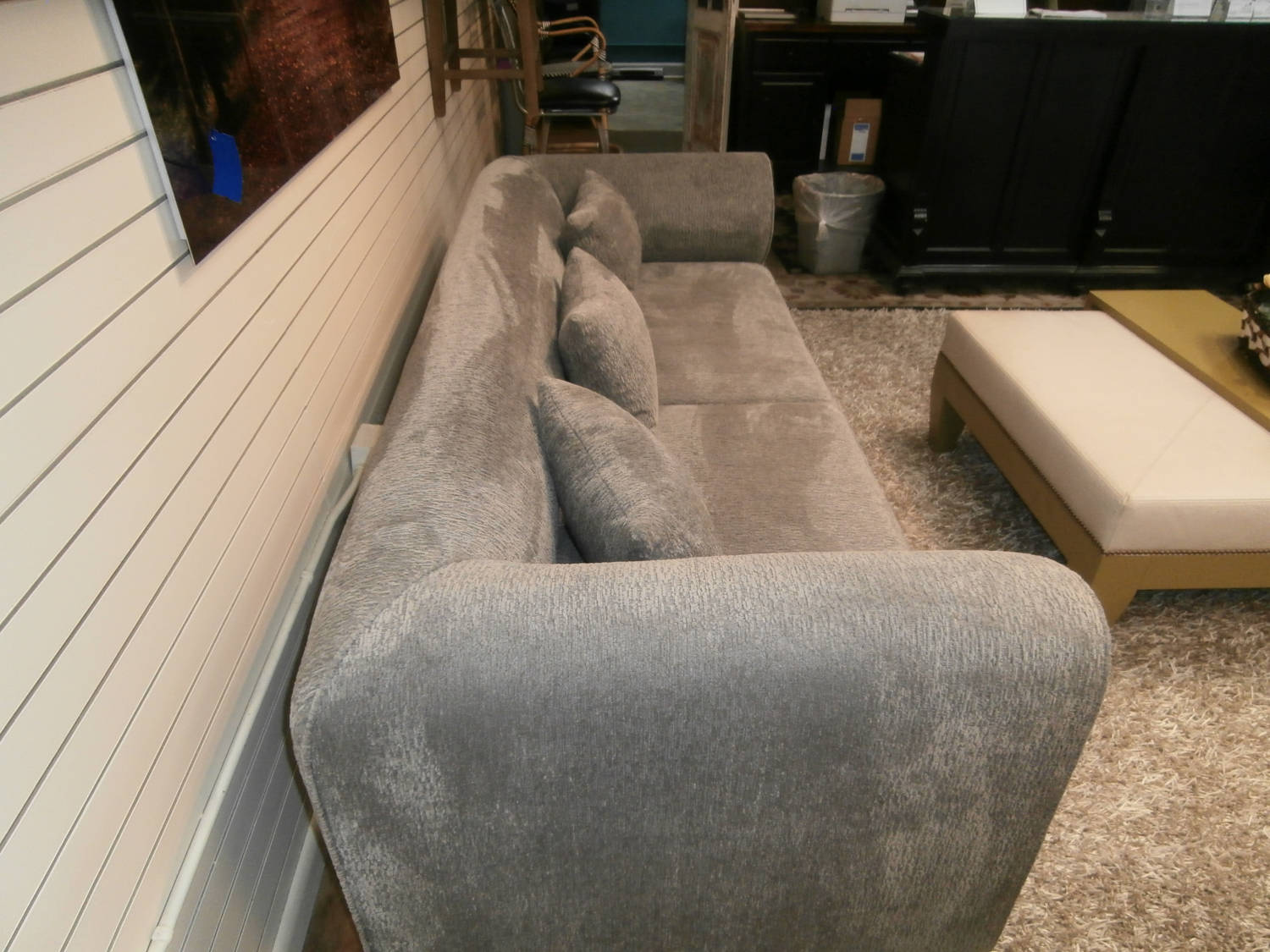 The Hollywood sofa is crowned with an understated wood plinth base, elegantly complemented by over-scaled cushioning tailored meticulously for an unparalleled seating experience. Measures 98"W,38"D,29"H in dove.