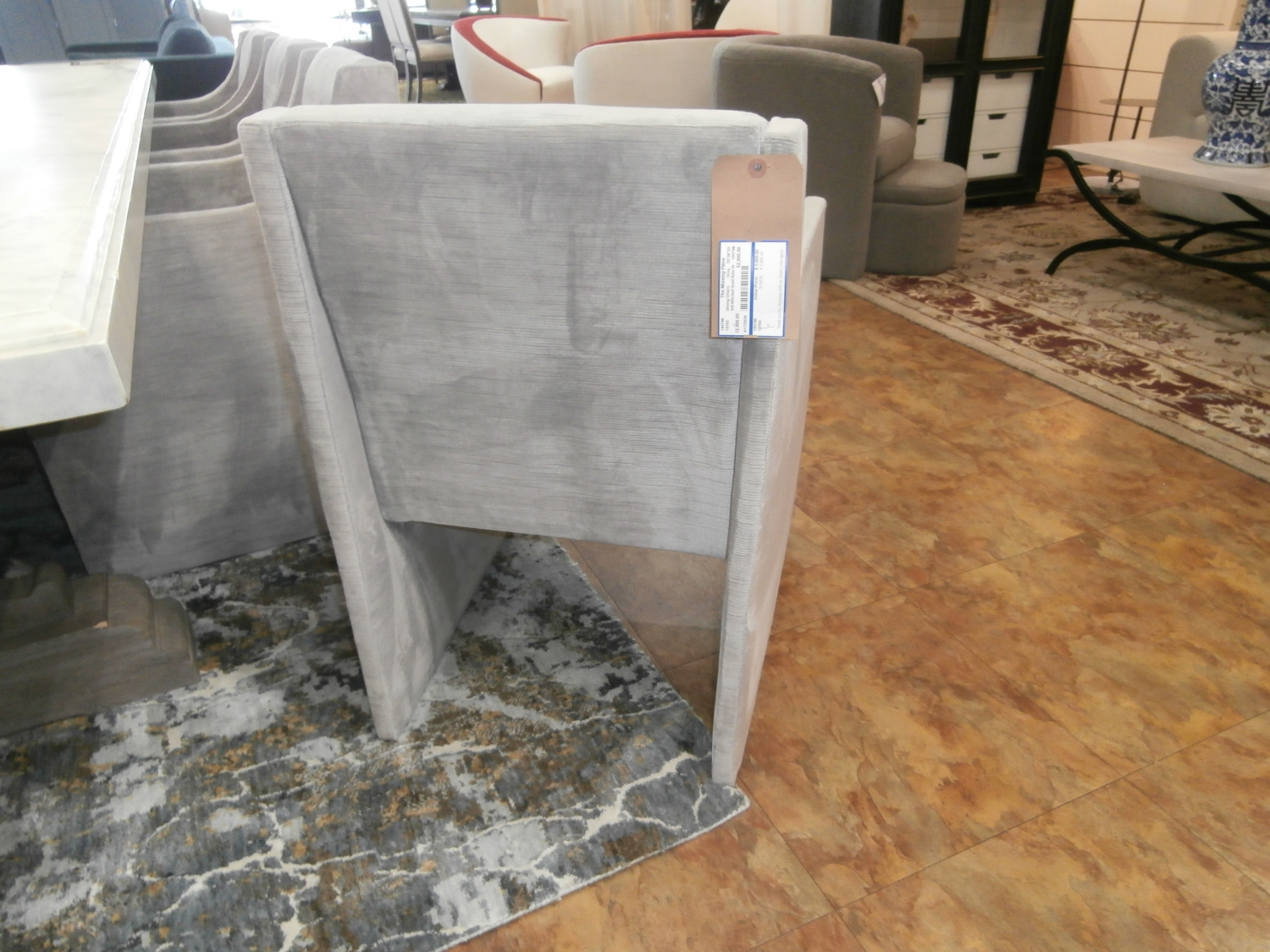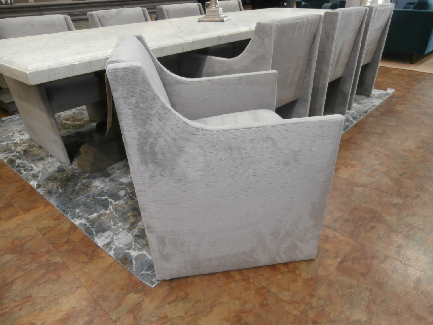 Simple yet sophisticated, Edie’s curved arms and seat soften cleanlines. Fully upholstered design works well with modern or traditional dining tables. This set of eight chair measures 23"W,26"D,33"H each in grey.