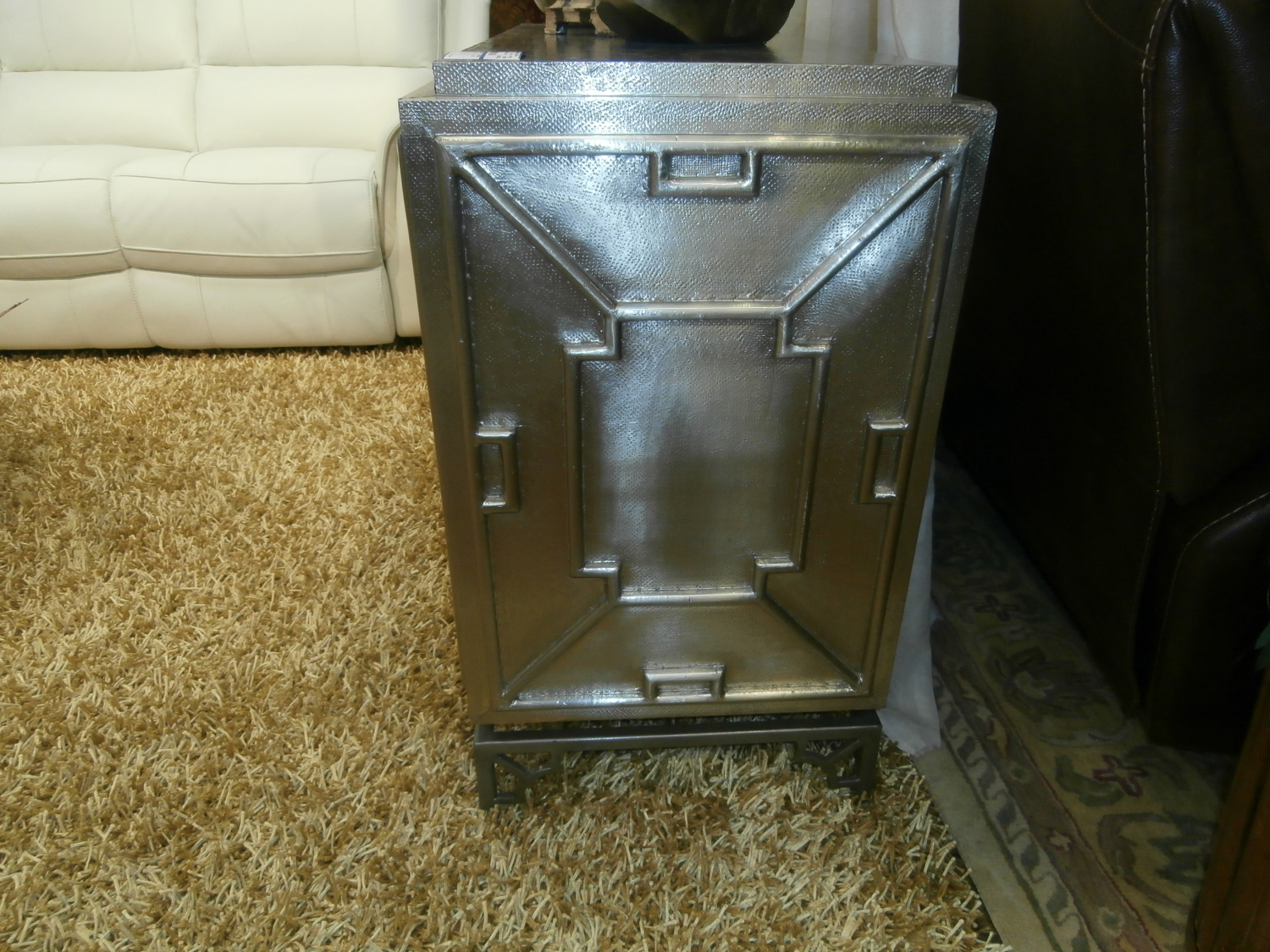 The Arabesque Chest is a metal clad wooden chest with a three dimensional lattice design. Made of hardwood the exterior is totally covered in sheets of white alloy metal, so that the piece can float in a room. 48"W,18"D,32"H