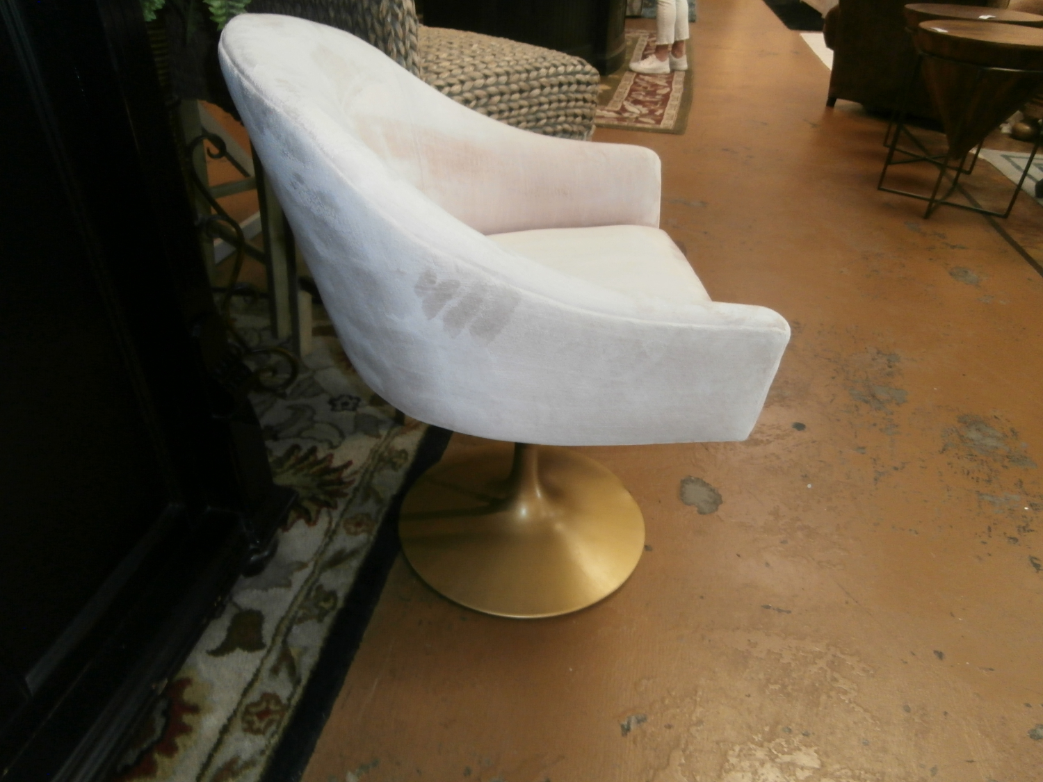 The perfect perch. Offering a feminine interpretation of a midcentury desk chair, Sylvie's bucket-style seat is upholstered in velvet and sits atop a graceful metal pedestal. Measures 24"W,24"D,31"H in Dusty petal.