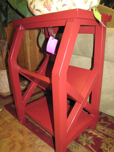 Pottery Barn end table in barn red. Measures 21 x 13 x 30.