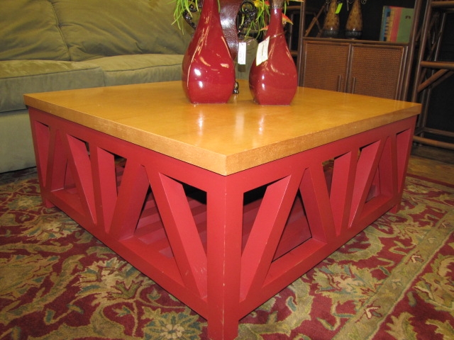 Fun, red and square coffee table measuring 43 x 43 x 18.