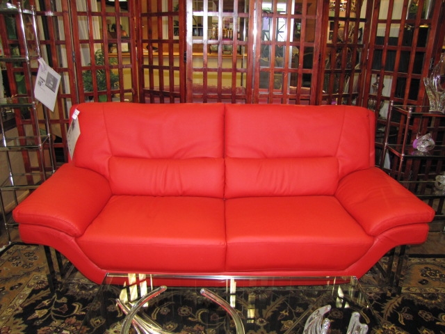 Cool and modern, leather sofa in tomato red. Measures 81 x 39 x36. Retails currently for $919.